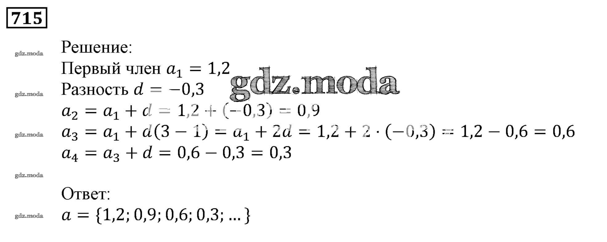 ОТВЕТ на задание № 715 Учебник по Алгебре 9 класс Мерзляк Алгоритм успеха