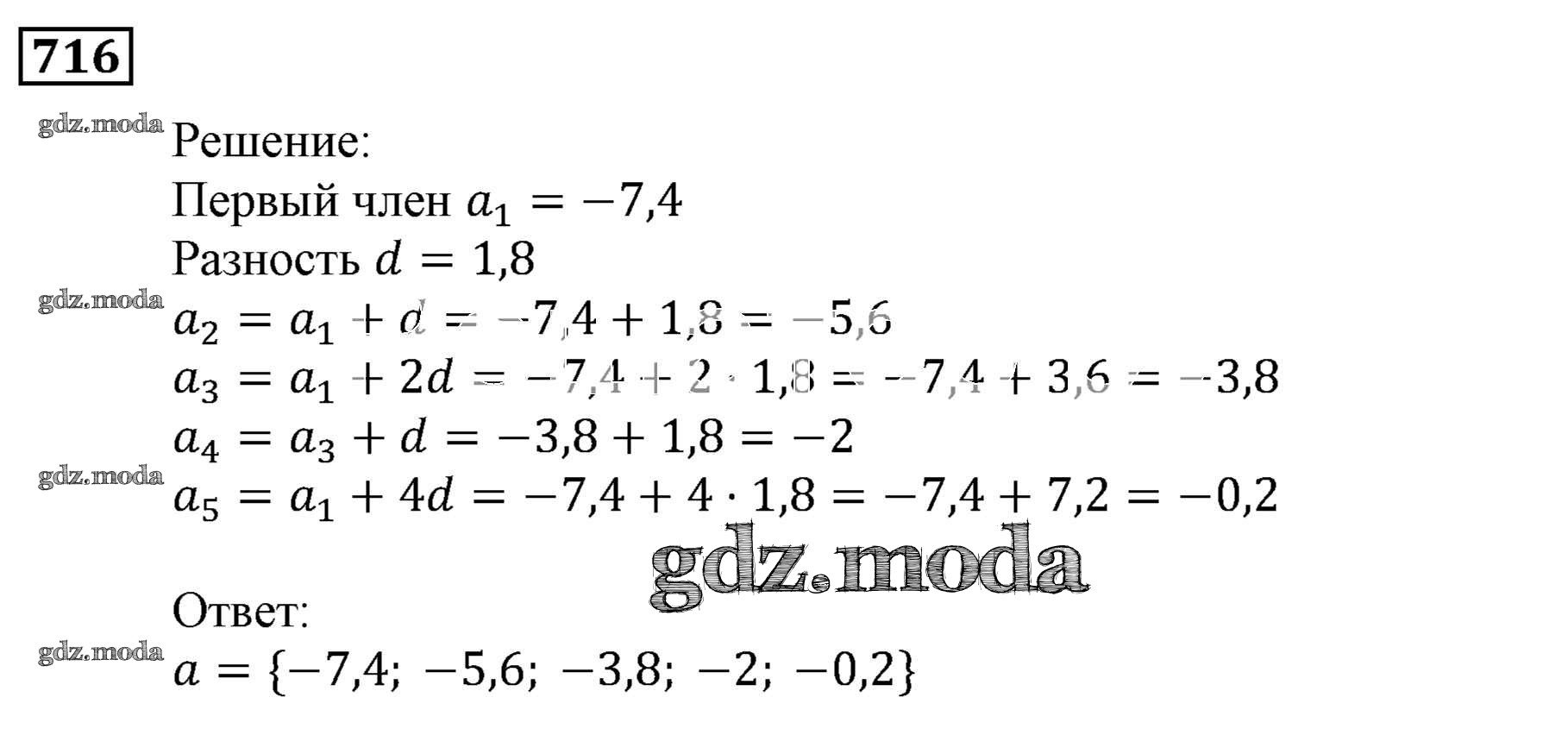 ОТВЕТ на задание № 716 Учебник по Алгебре 9 класс Мерзляк Алгоритм успеха