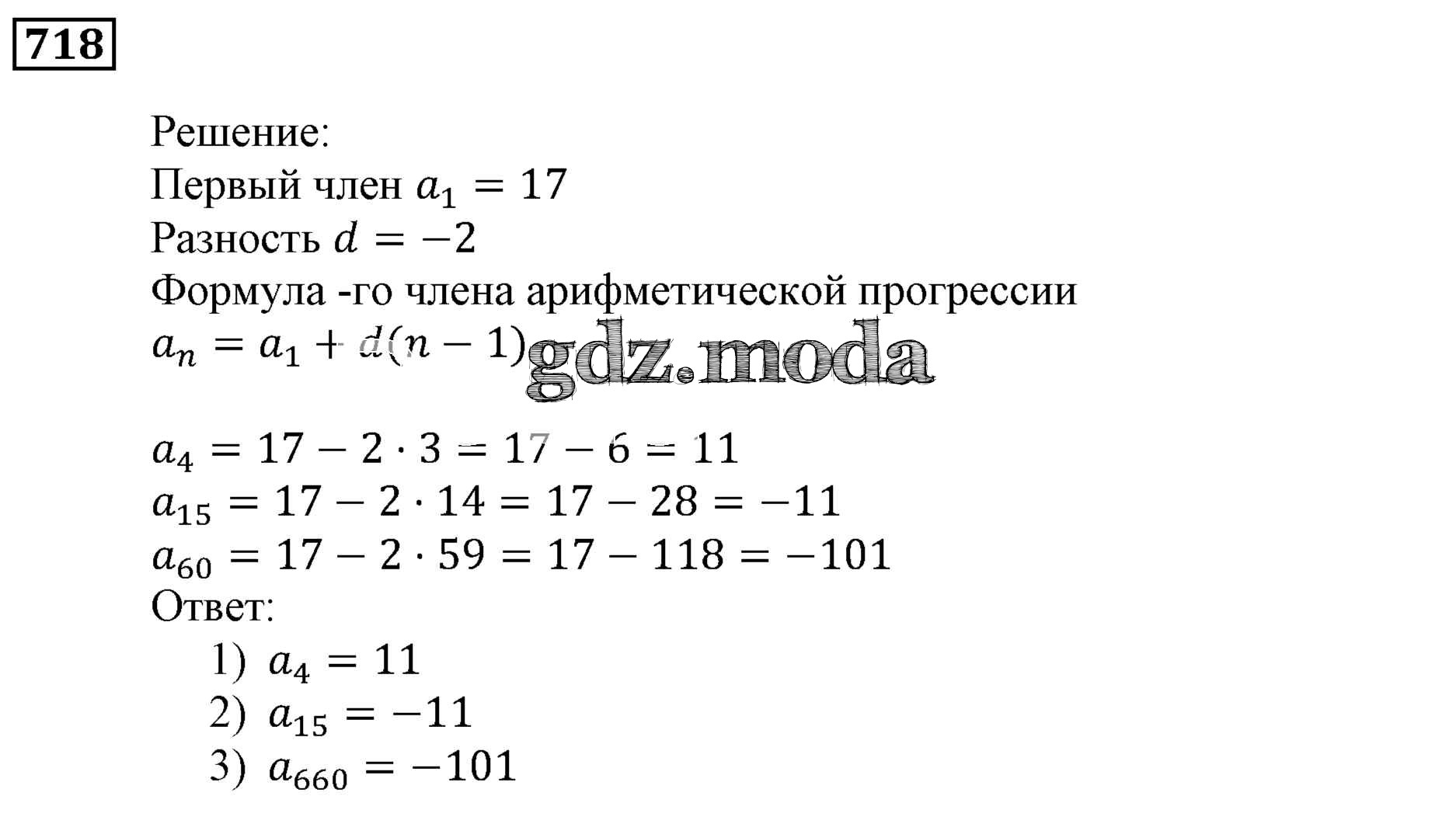 ОТВЕТ на задание № 718 Учебник по Алгебре 9 класс Мерзляк Алгоритм успеха