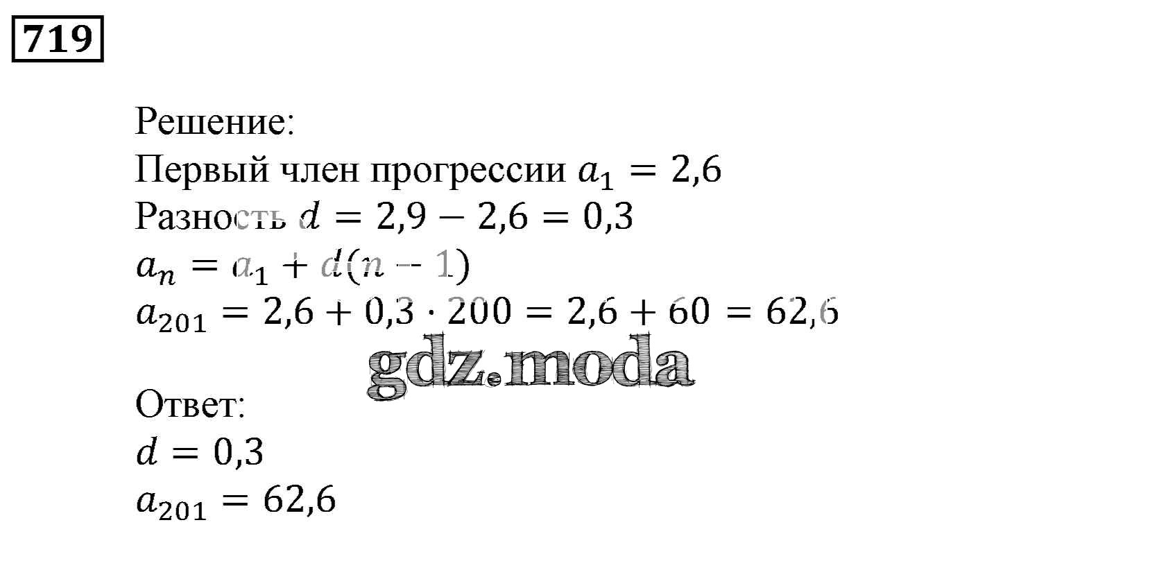 ОТВЕТ на задание № 719 Учебник по Алгебре 9 класс Мерзляк Алгоритм успеха