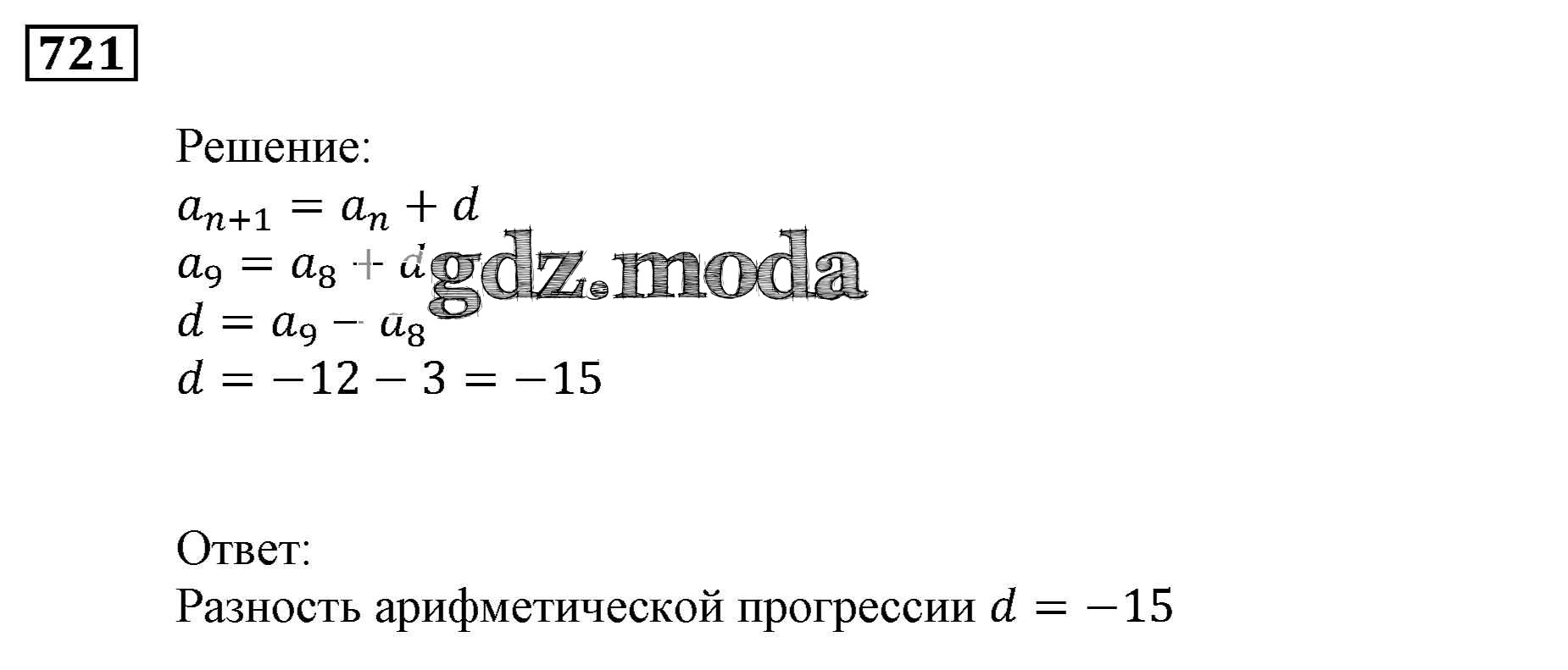 ОТВЕТ на задание № 721 Учебник по Алгебре 9 класс Мерзляк Алгоритм успеха