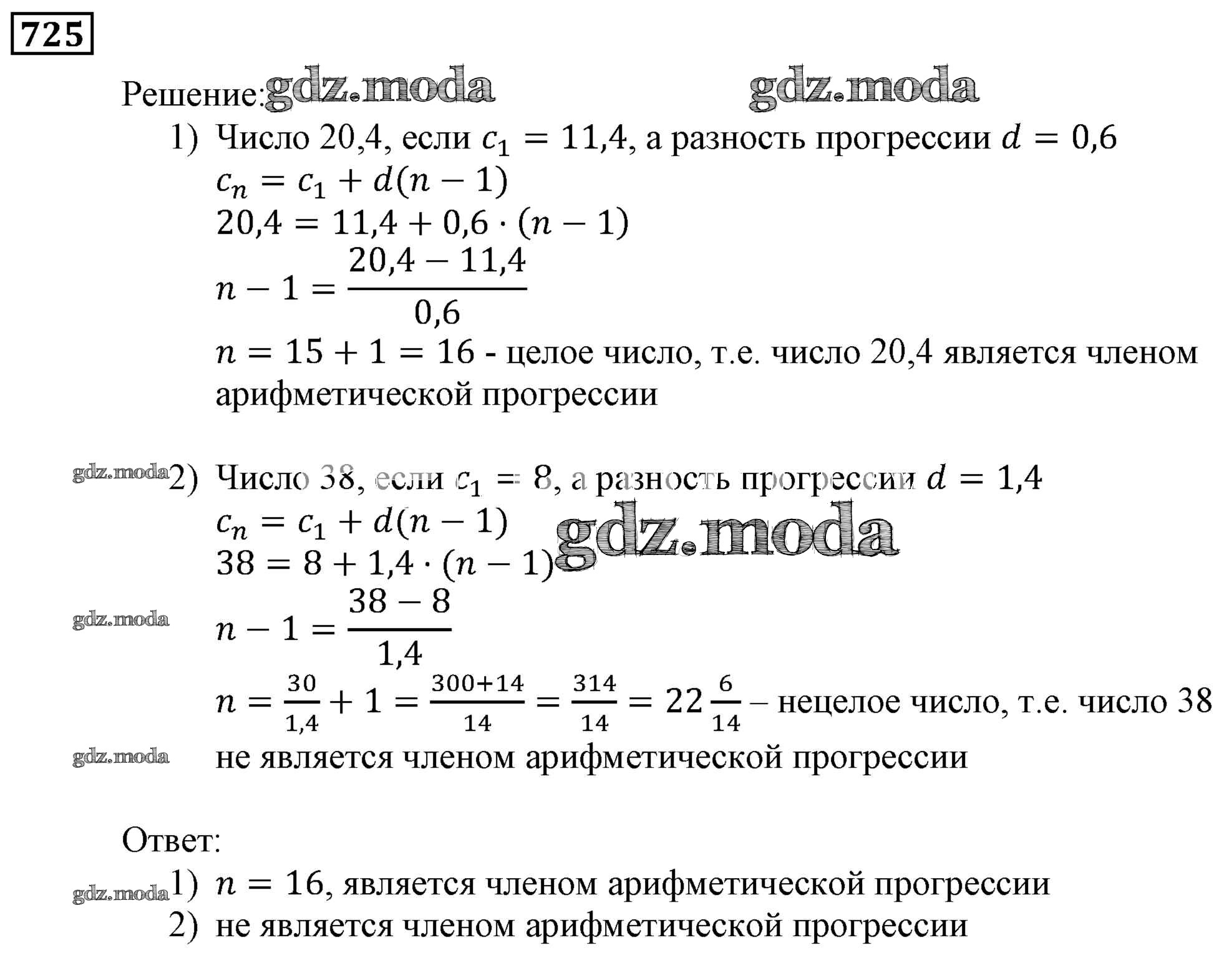 ОТВЕТ на задание № 725 Учебник по Алгебре 9 класс Мерзляк Алгоритм успеха