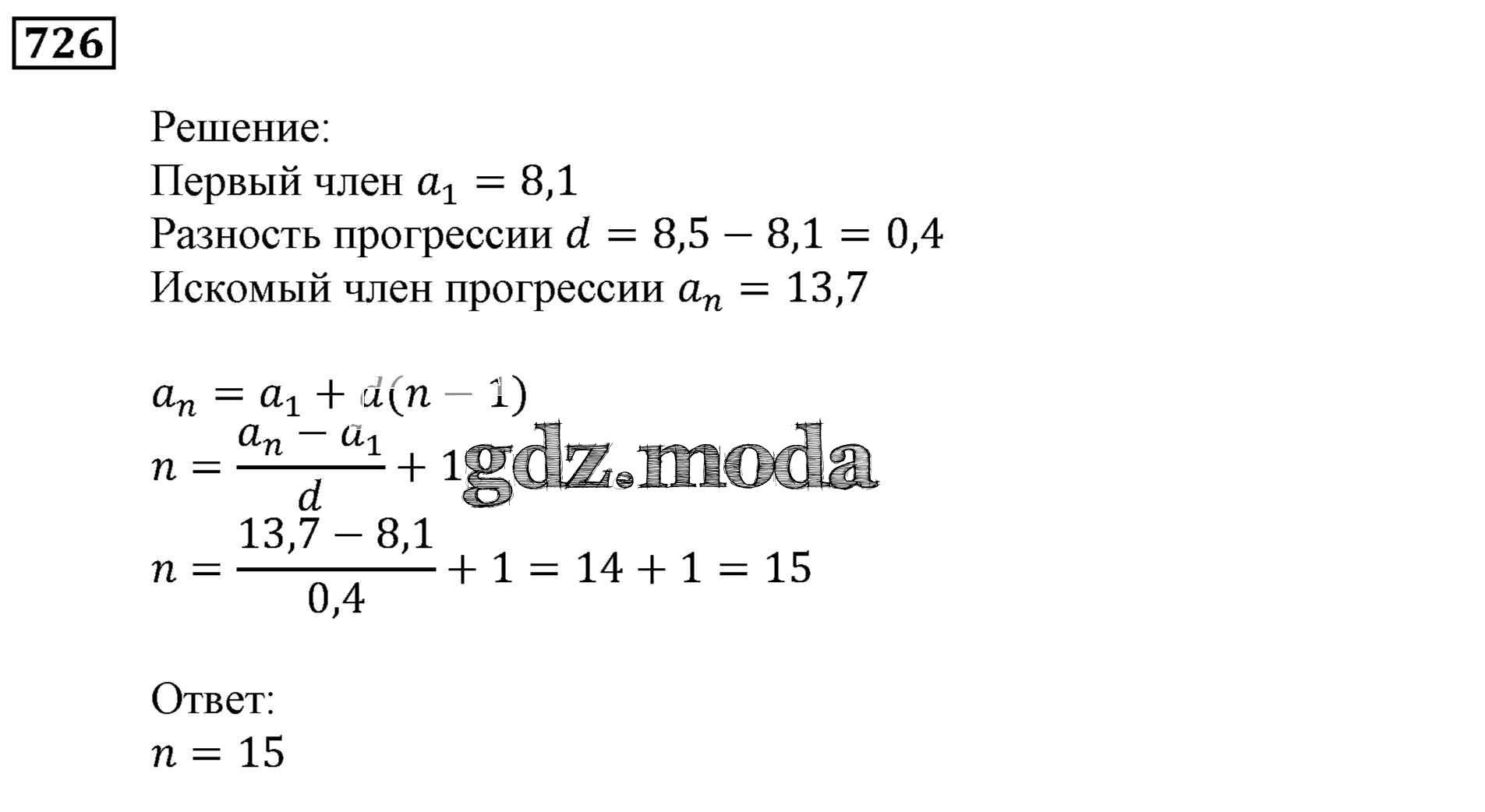 ОТВЕТ на задание № 726 Учебник по Алгебре 9 класс Мерзляк Алгоритм успеха