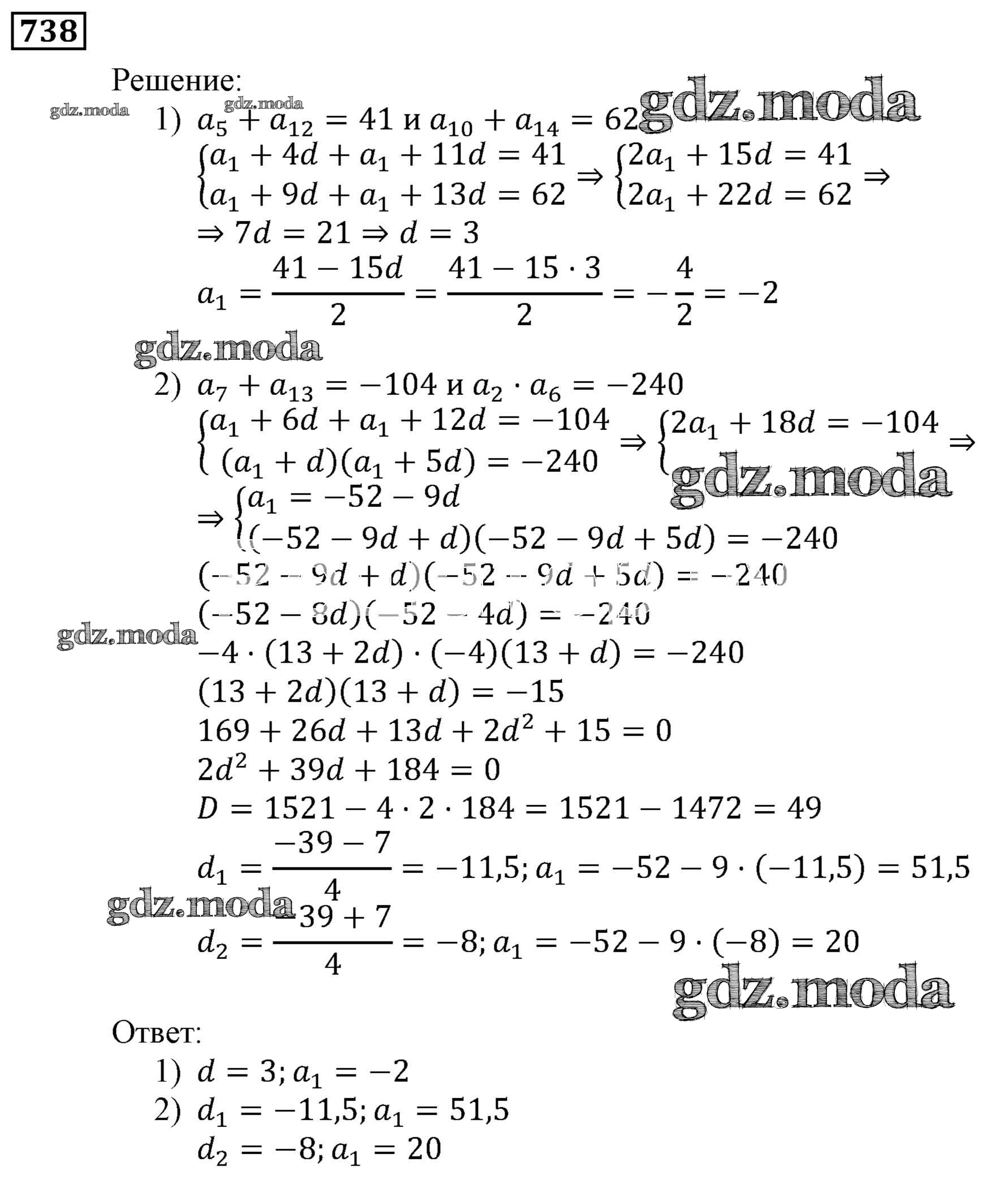 ОТВЕТ на задание № 738 Учебник по Алгебре 9 класс Мерзляк Алгоритм успеха