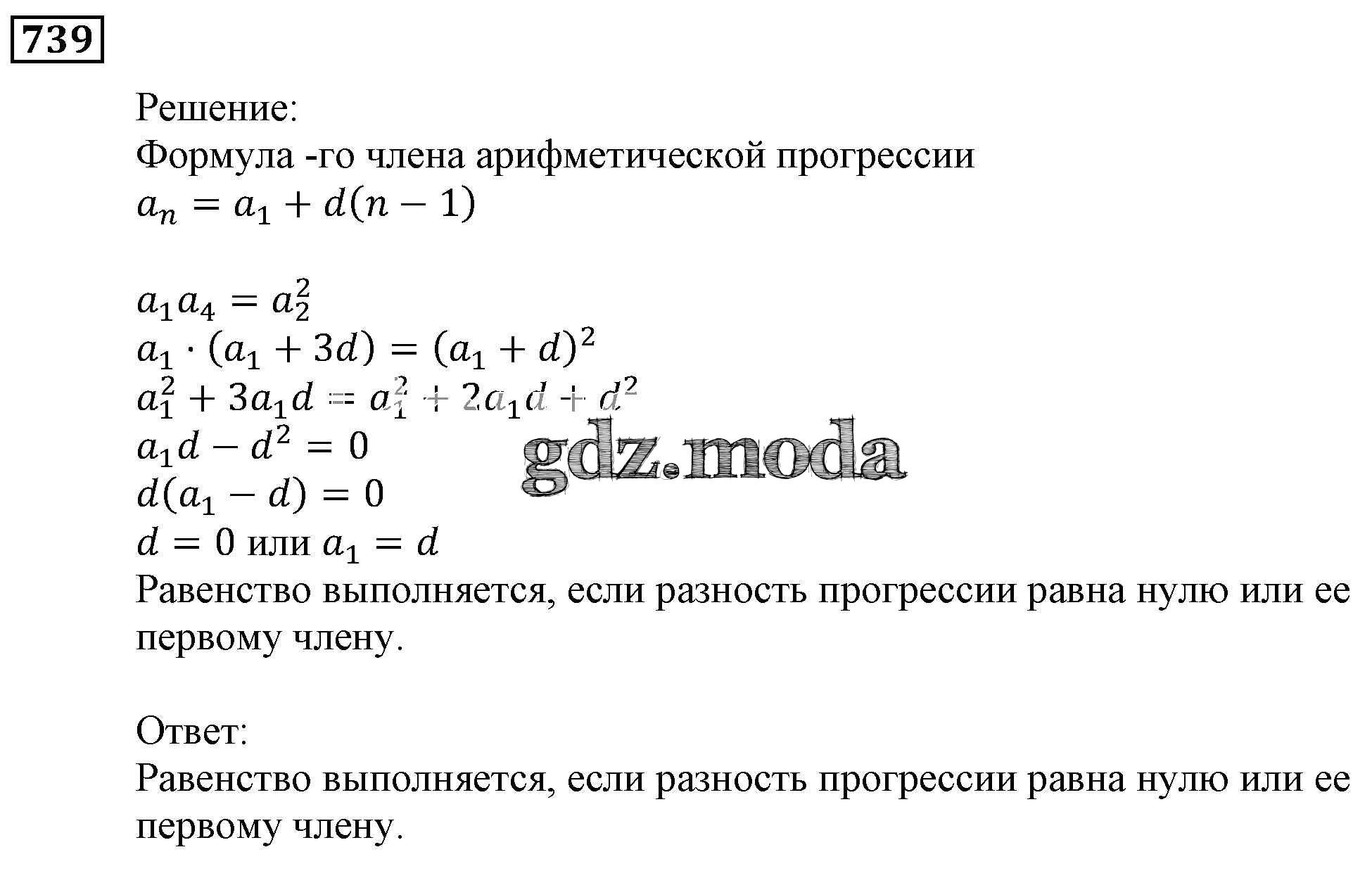ОТВЕТ на задание № 739 Учебник по Алгебре 9 класс Мерзляк Алгоритм успеха