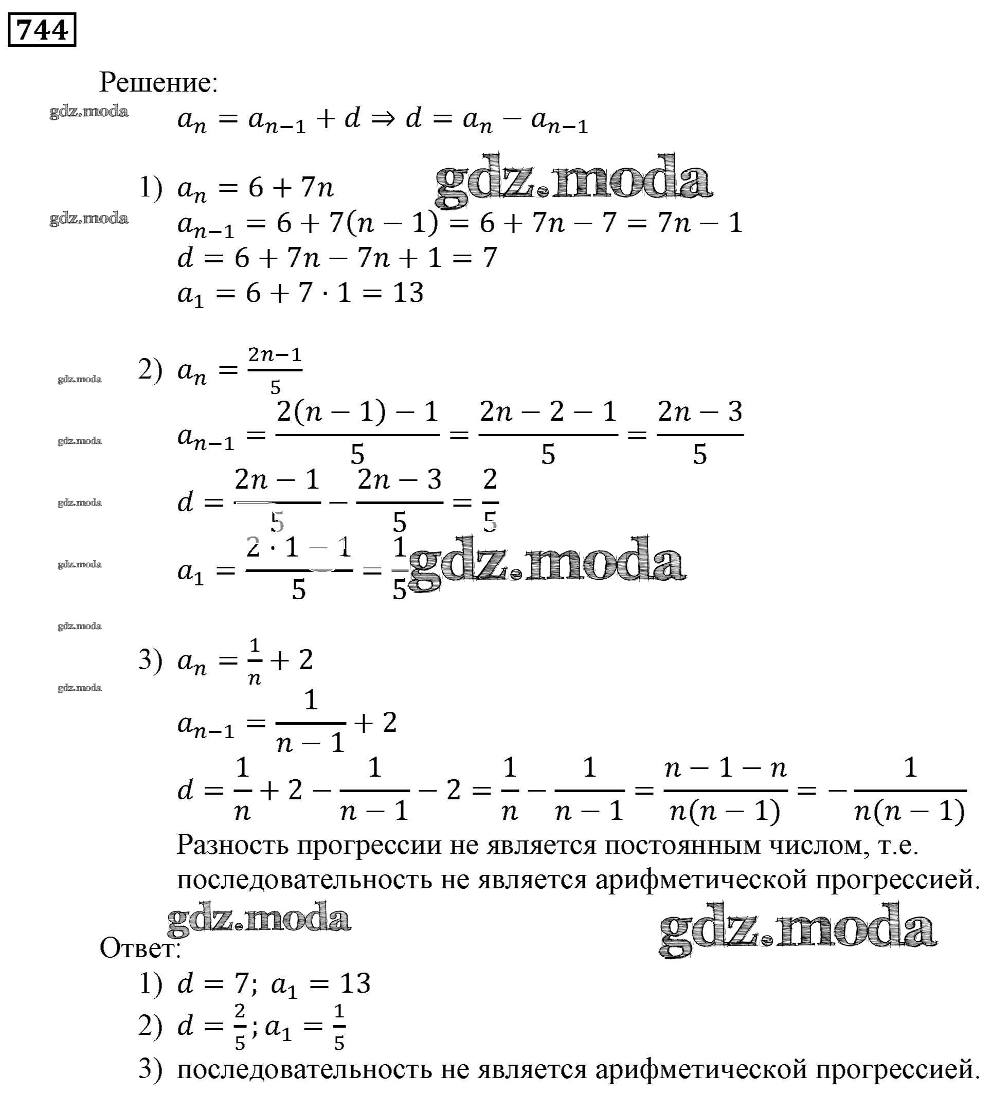 ОТВЕТ на задание № 744 Учебник по Алгебре 9 класс Мерзляк Алгоритм успеха