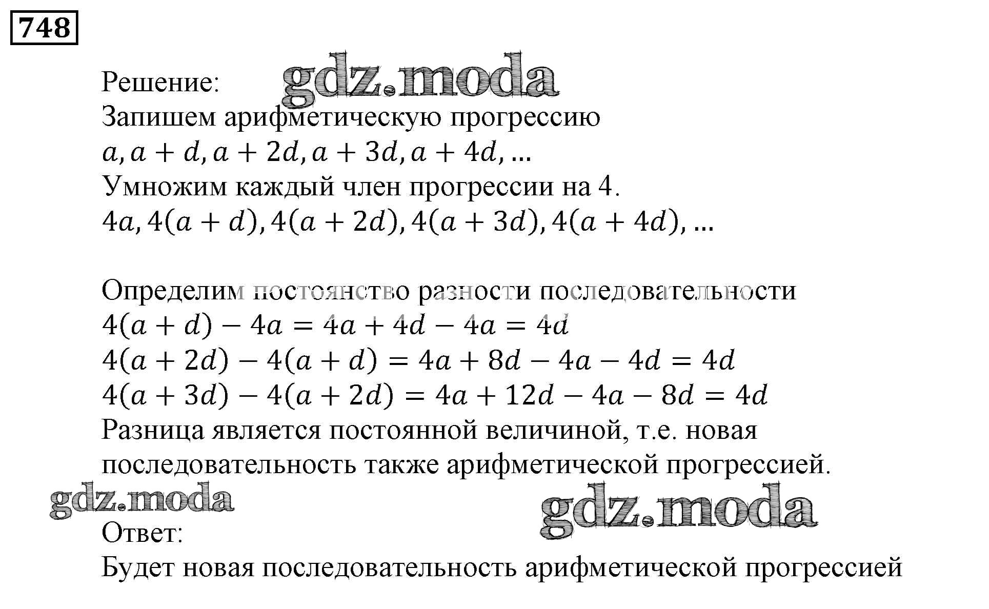 ОТВЕТ на задание № 748 Учебник по Алгебре 9 класс Мерзляк Алгоритм успеха