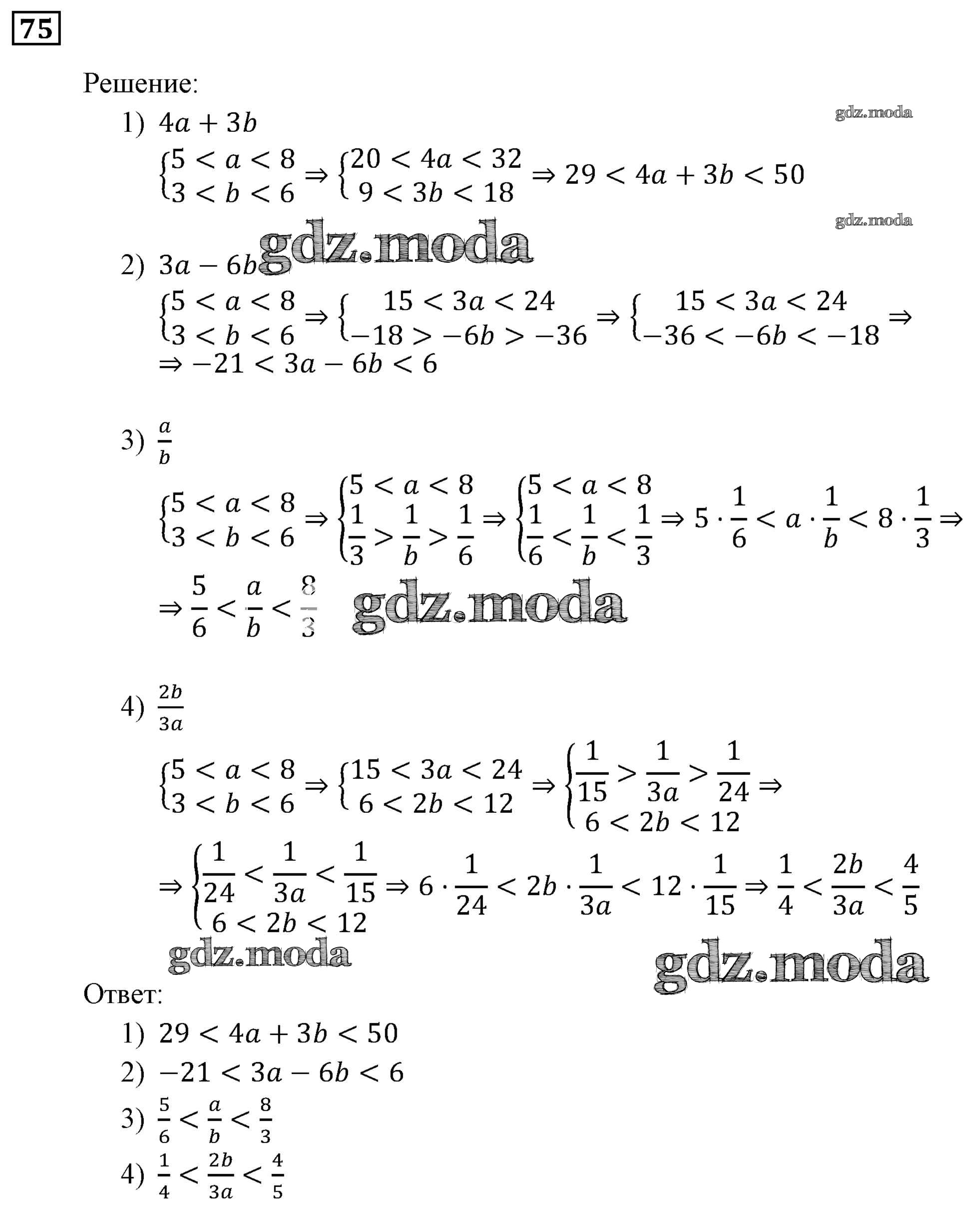 ОТВЕТ на задание № 75 Учебник по Алгебре 9 класс Мерзляк Алгоритм успеха