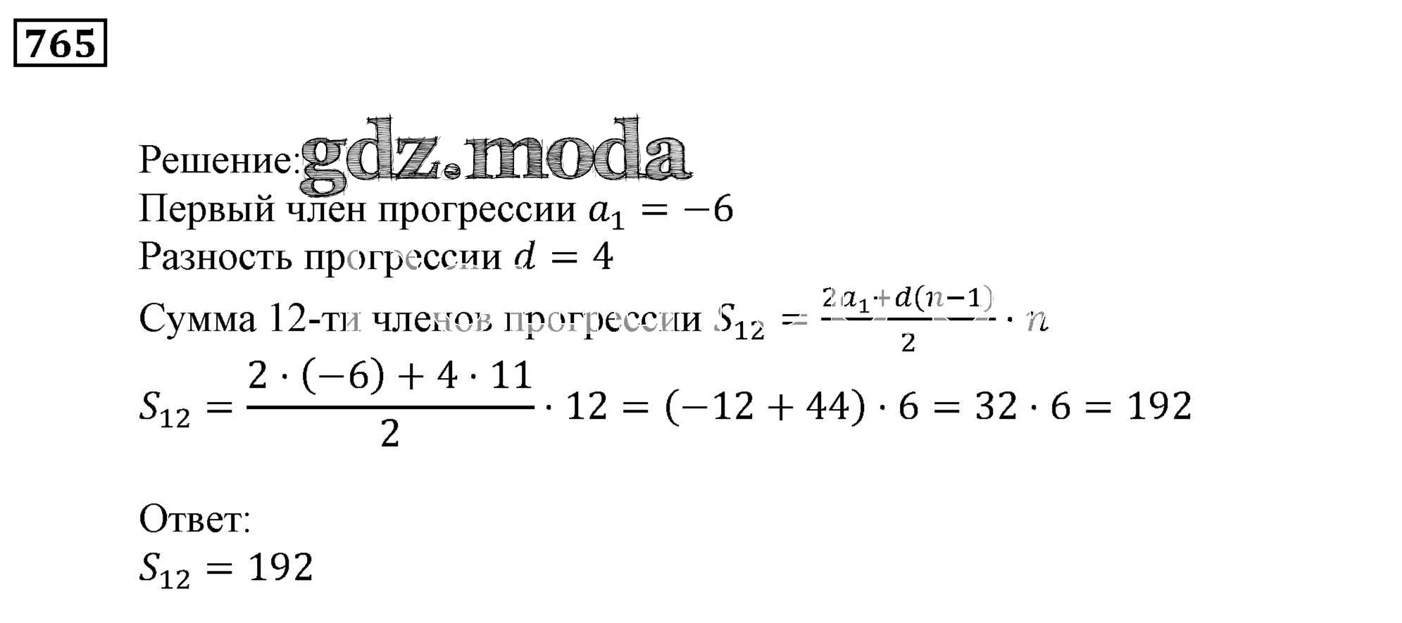ОТВЕТ на задание № 765 Учебник по Алгебре 9 класс Мерзляк Алгоритм успеха