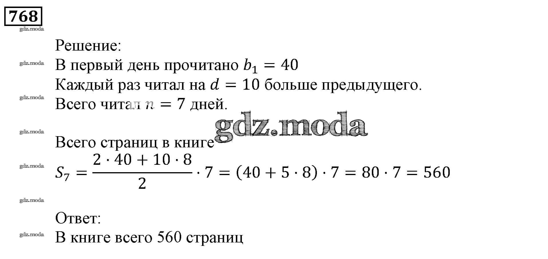 ОТВЕТ на задание № 768 Учебник по Алгебре 9 класс Мерзляк Алгоритм успеха