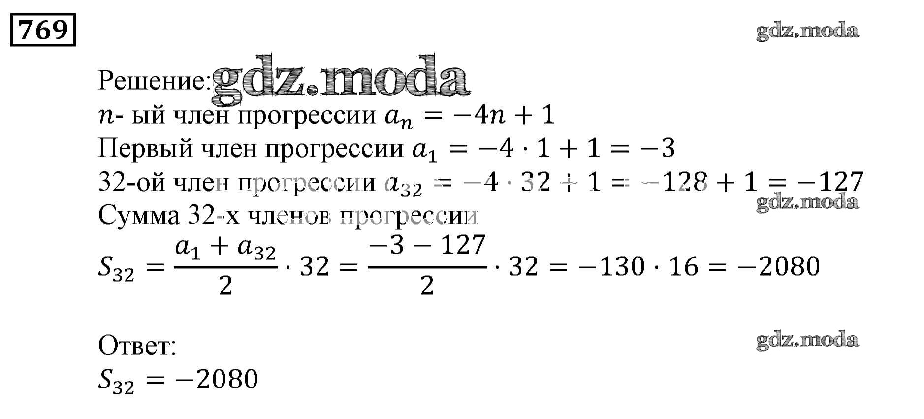 ОТВЕТ на задание № 769 Учебник по Алгебре 9 класс Мерзляк Алгоритм успеха