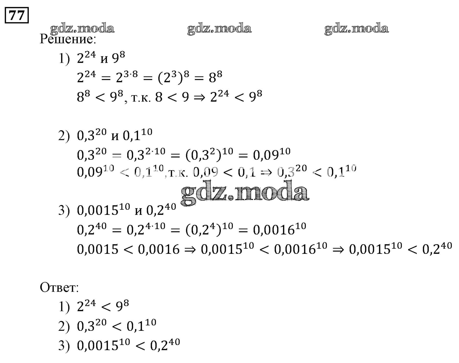 ОТВЕТ на задание № 77 Учебник по Алгебре 9 класс Мерзляк Алгоритм успеха