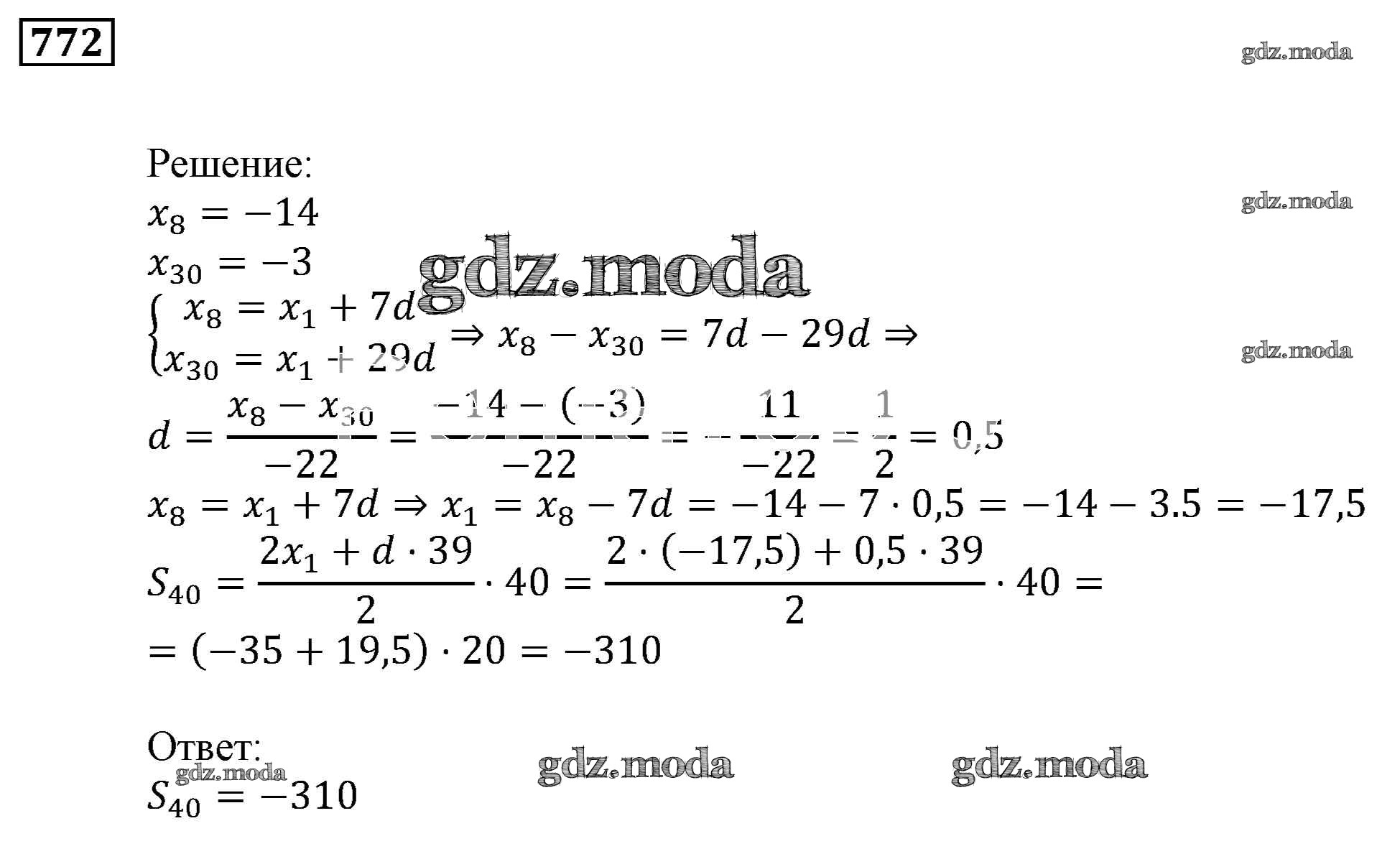 ОТВЕТ на задание № 772 Учебник по Алгебре 9 класс Мерзляк Алгоритм успеха