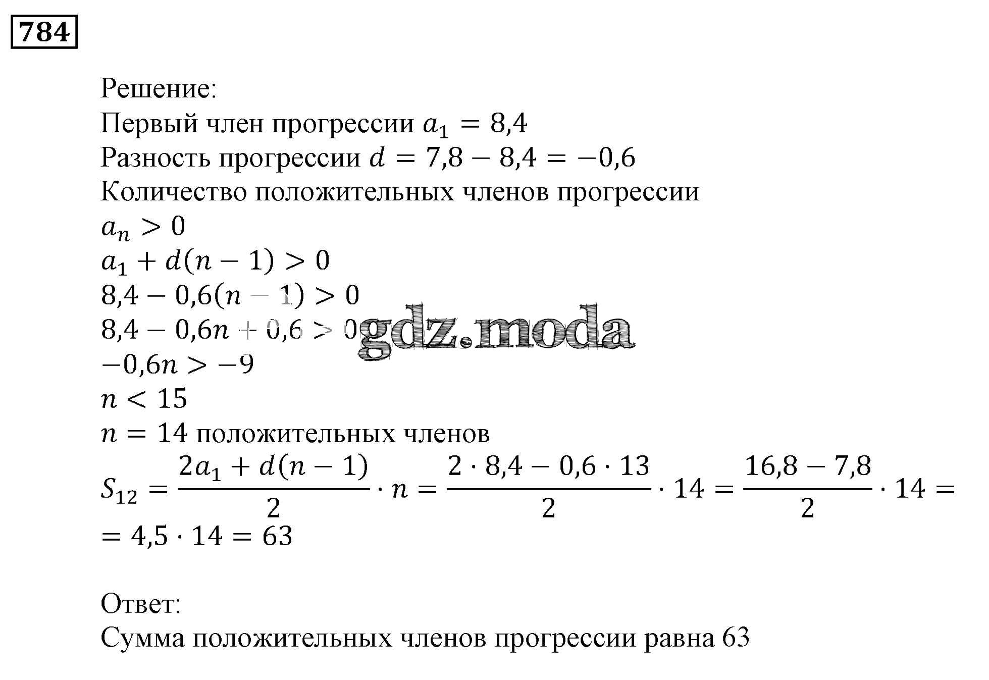 ОТВЕТ на задание № 784 Учебник по Алгебре 9 класс Мерзляк Алгоритм успеха