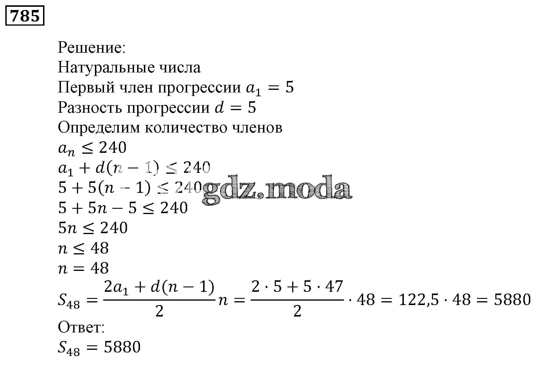 ОТВЕТ на задание № 785 Учебник по Алгебре 9 класс Мерзляк Алгоритм успеха