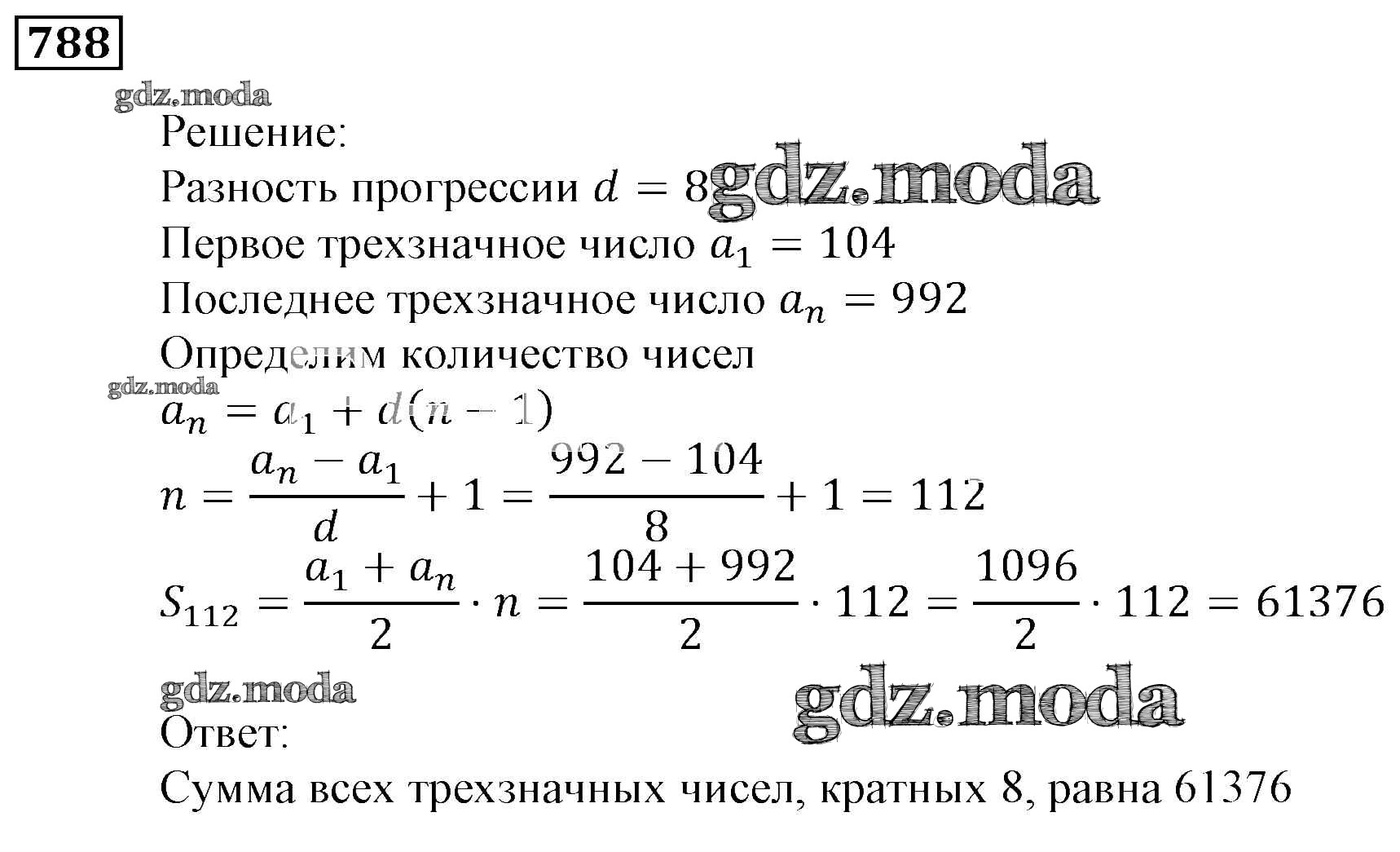 ОТВЕТ на задание № 788 Учебник по Алгебре 9 класс Мерзляк Алгоритм успеха