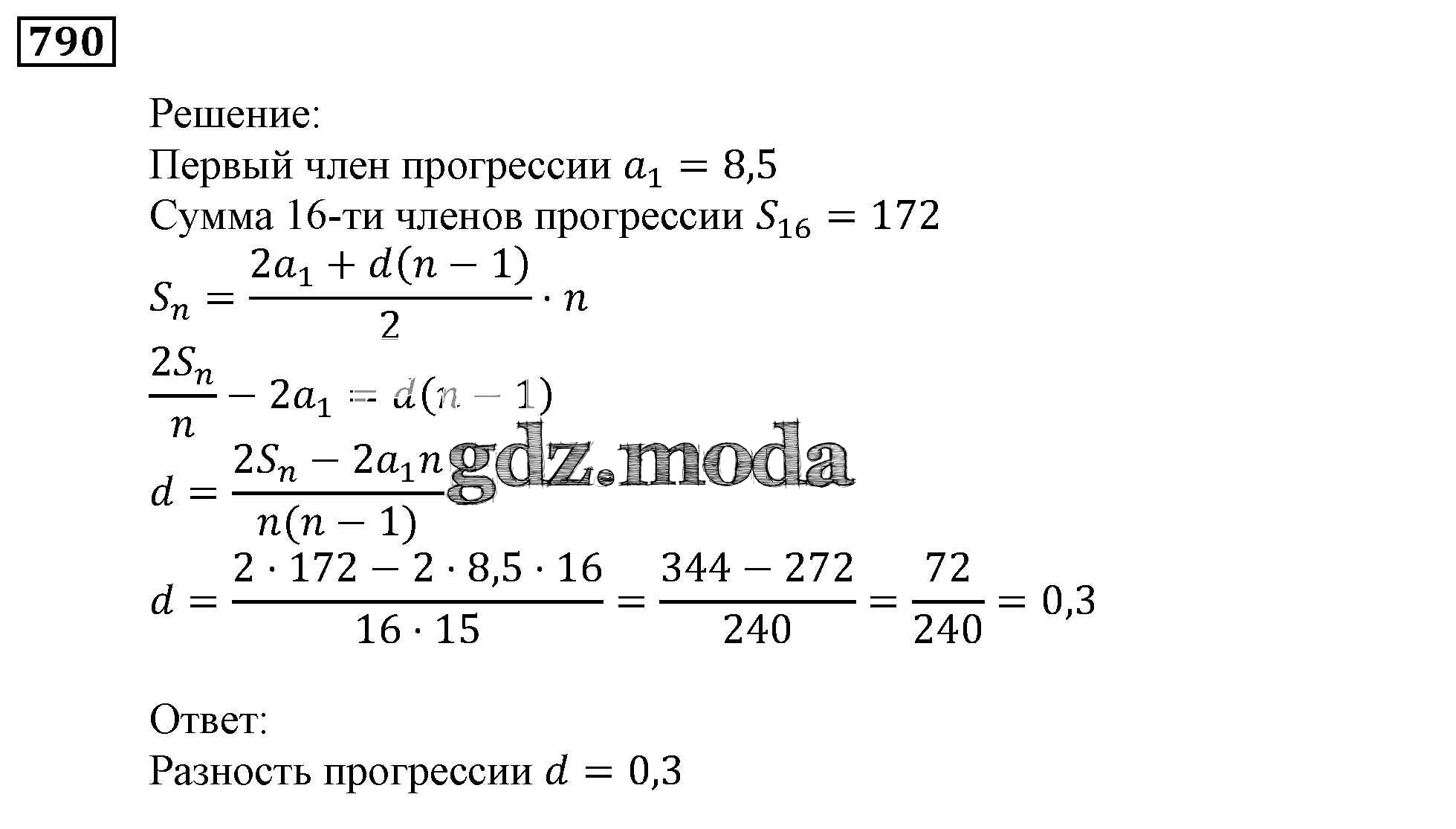 ОТВЕТ на задание № 790 Учебник по Алгебре 9 класс Мерзляк Алгоритм успеха