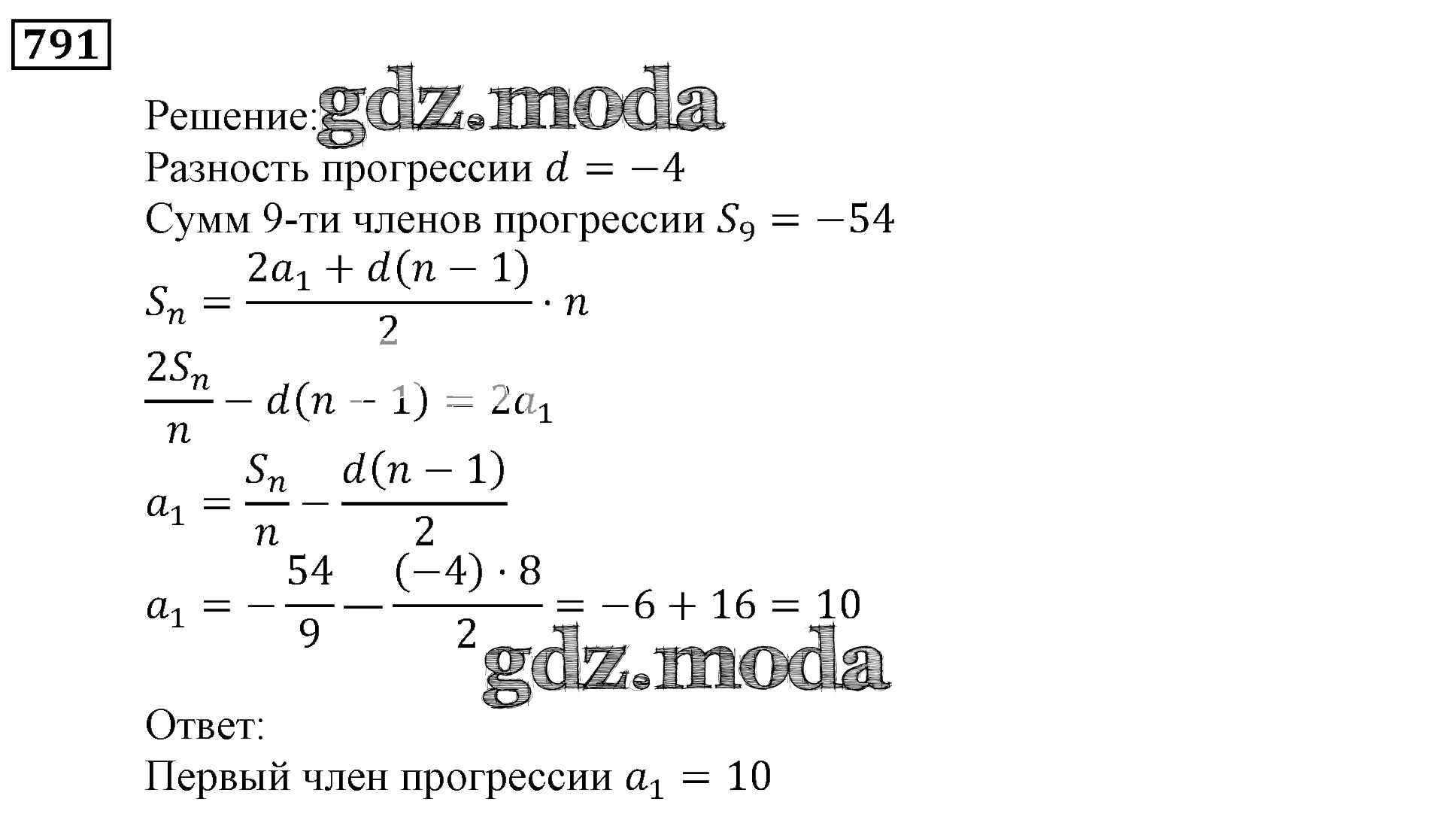 ОТВЕТ на задание № 791 Учебник по Алгебре 9 класс Мерзляк Алгоритм успеха