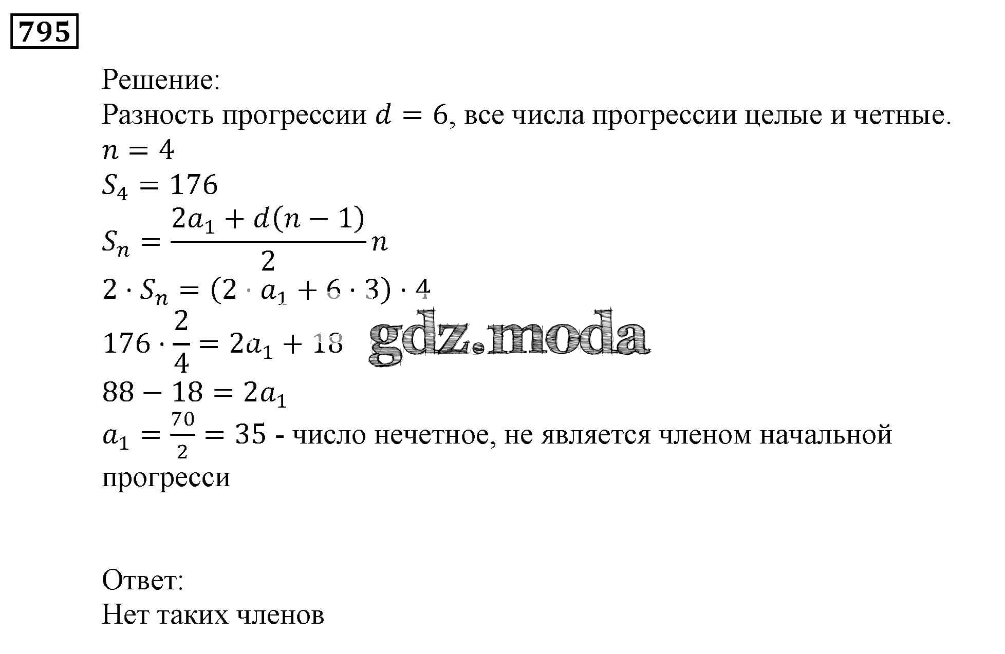 ОТВЕТ на задание № 795 Учебник по Алгебре 9 класс Мерзляк Алгоритм успеха