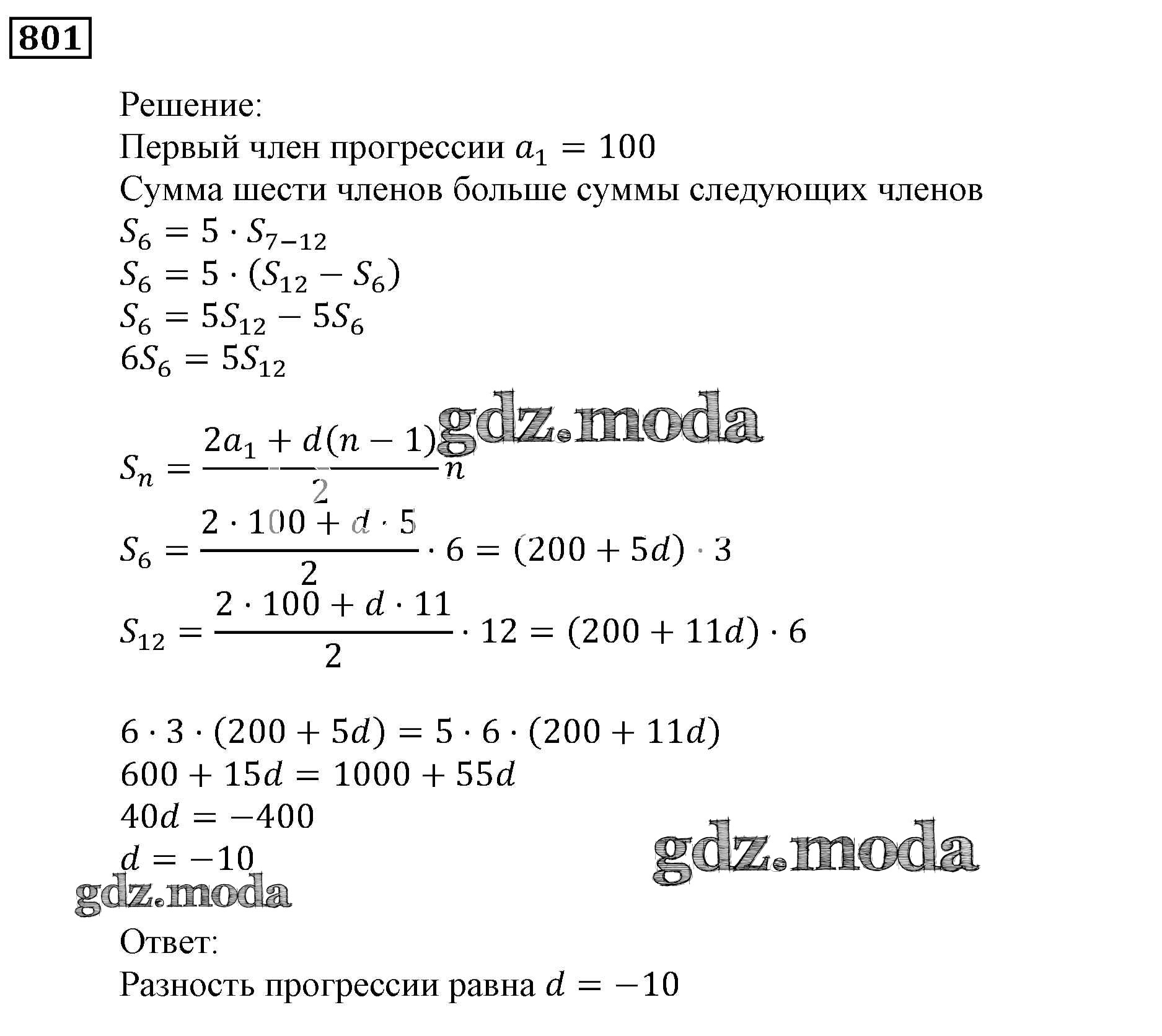 ОТВЕТ на задание № 801 Учебник по Алгебре 9 класс Мерзляк Алгоритм успеха