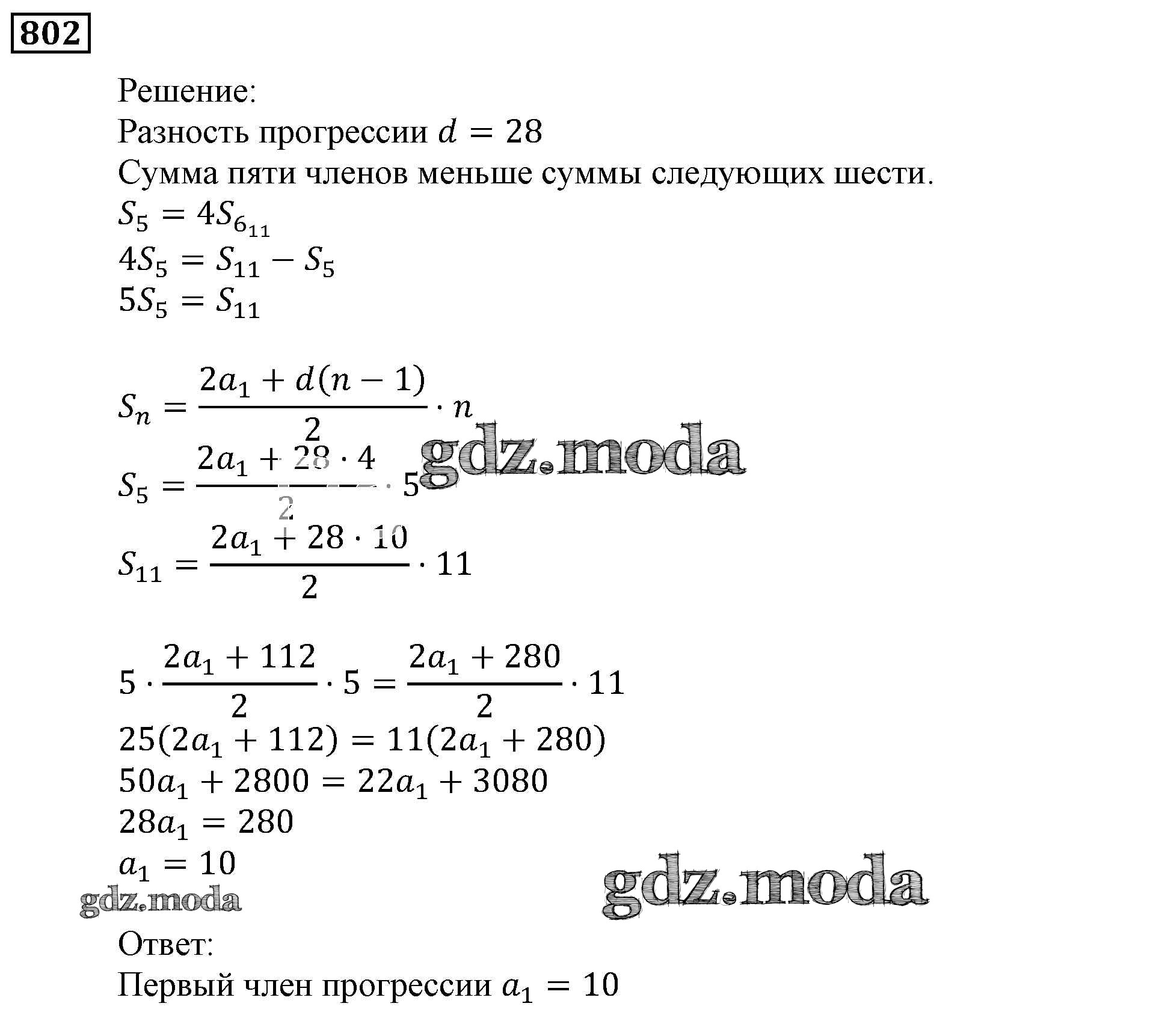 ОТВЕТ на задание № 802 Учебник по Алгебре 9 класс Мерзляк Алгоритм успеха