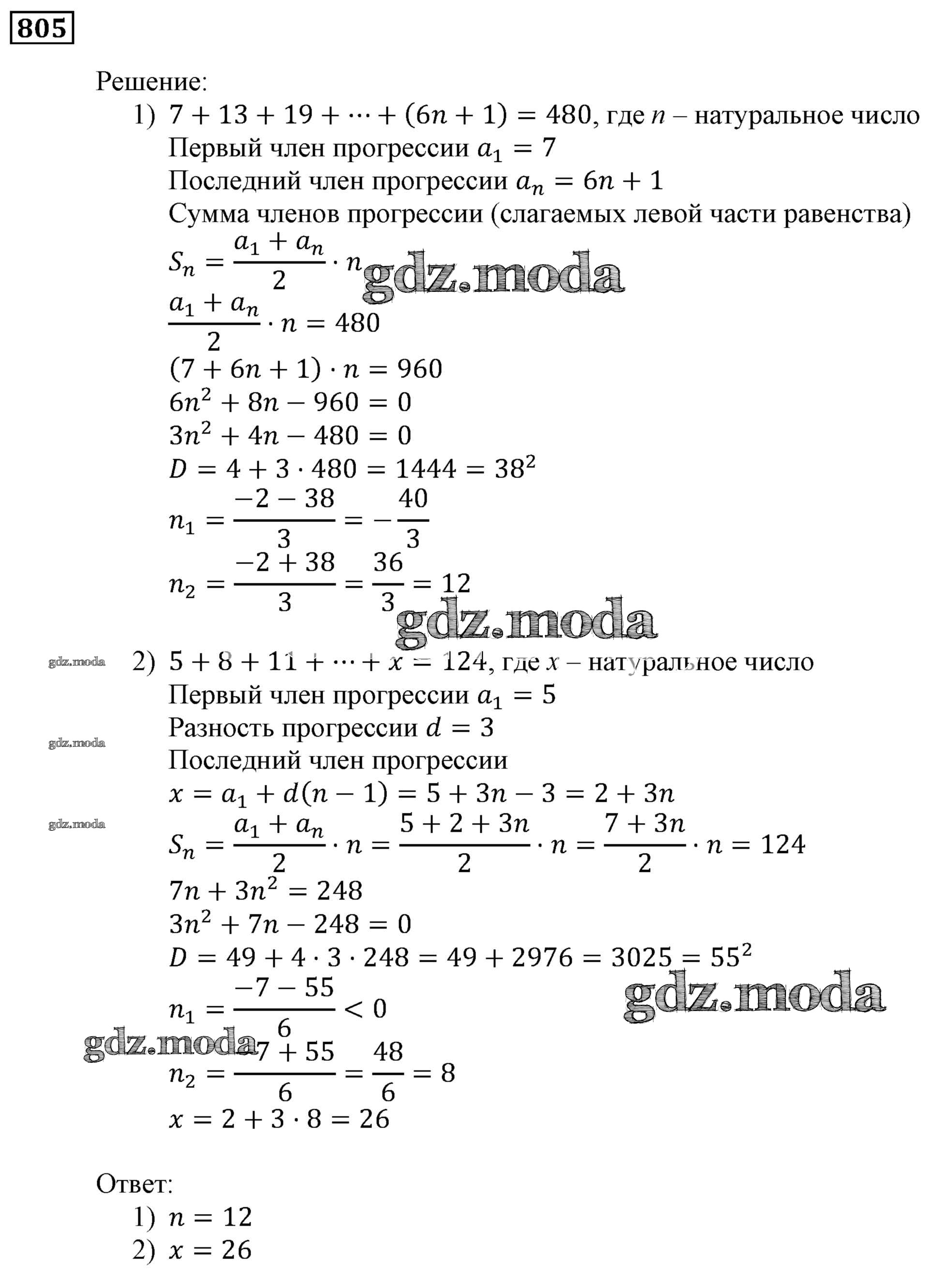 ОТВЕТ на задание № 805 Учебник по Алгебре 9 класс Мерзляк Алгоритм успеха