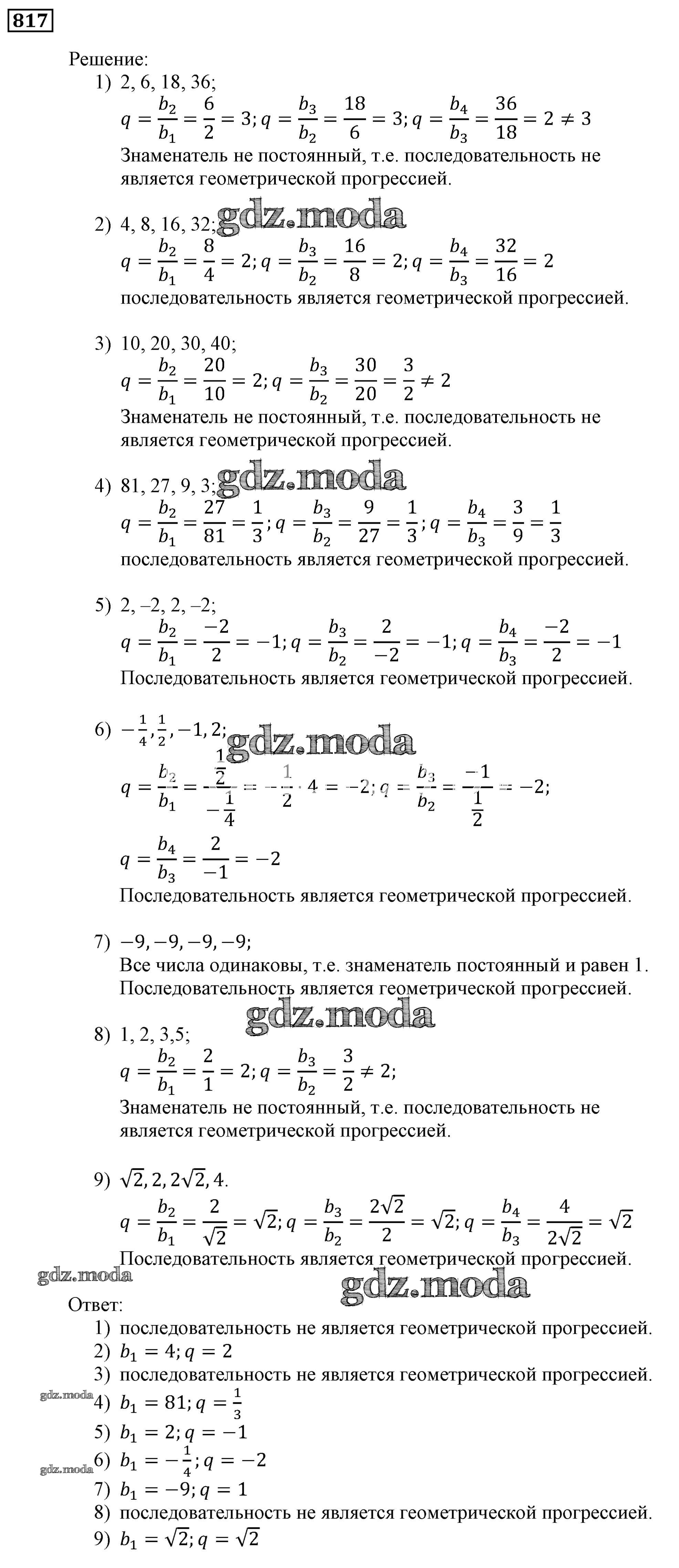 ОТВЕТ на задание № 817 Учебник по Алгебре 9 класс Мерзляк Алгоритм успеха
