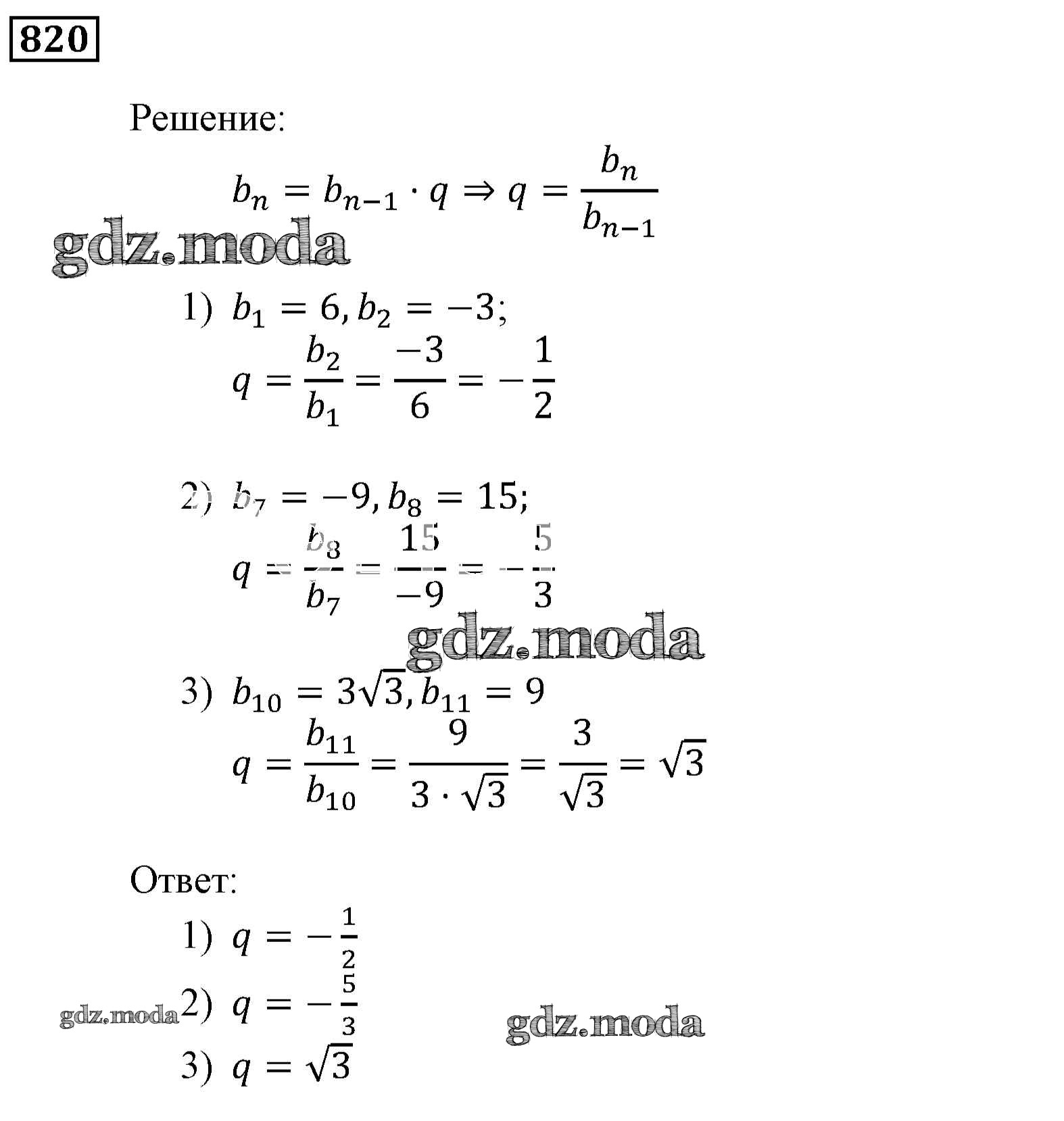 ОТВЕТ на задание № 820 Учебник по Алгебре 9 класс Мерзляк Алгоритм успеха