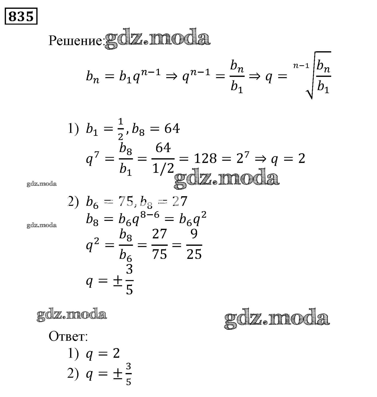 ОТВЕТ на задание № 835 Учебник по Алгебре 9 класс Мерзляк Алгоритм успеха