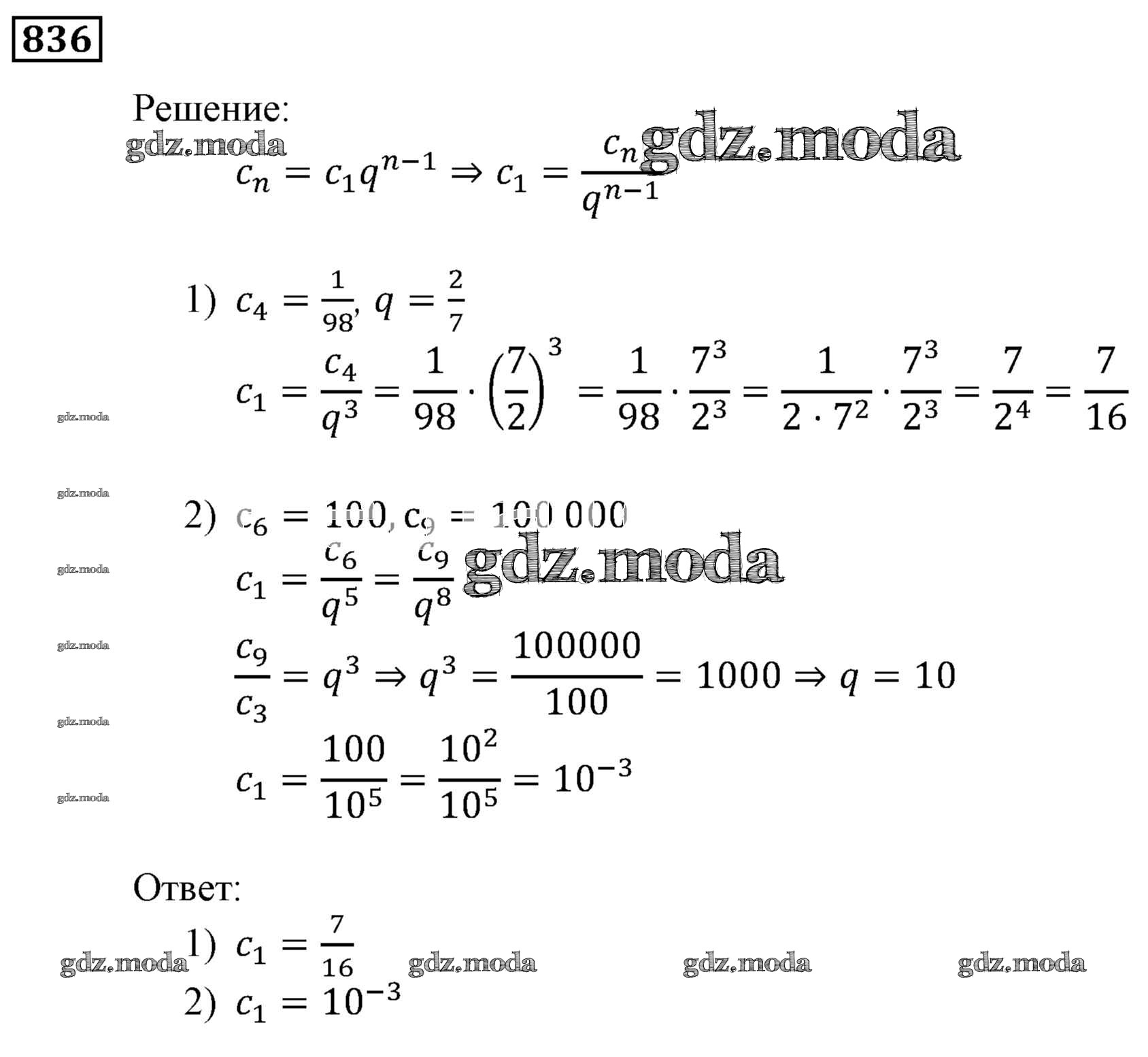 ОТВЕТ на задание № 836 Учебник по Алгебре 9 класс Мерзляк Алгоритм успеха