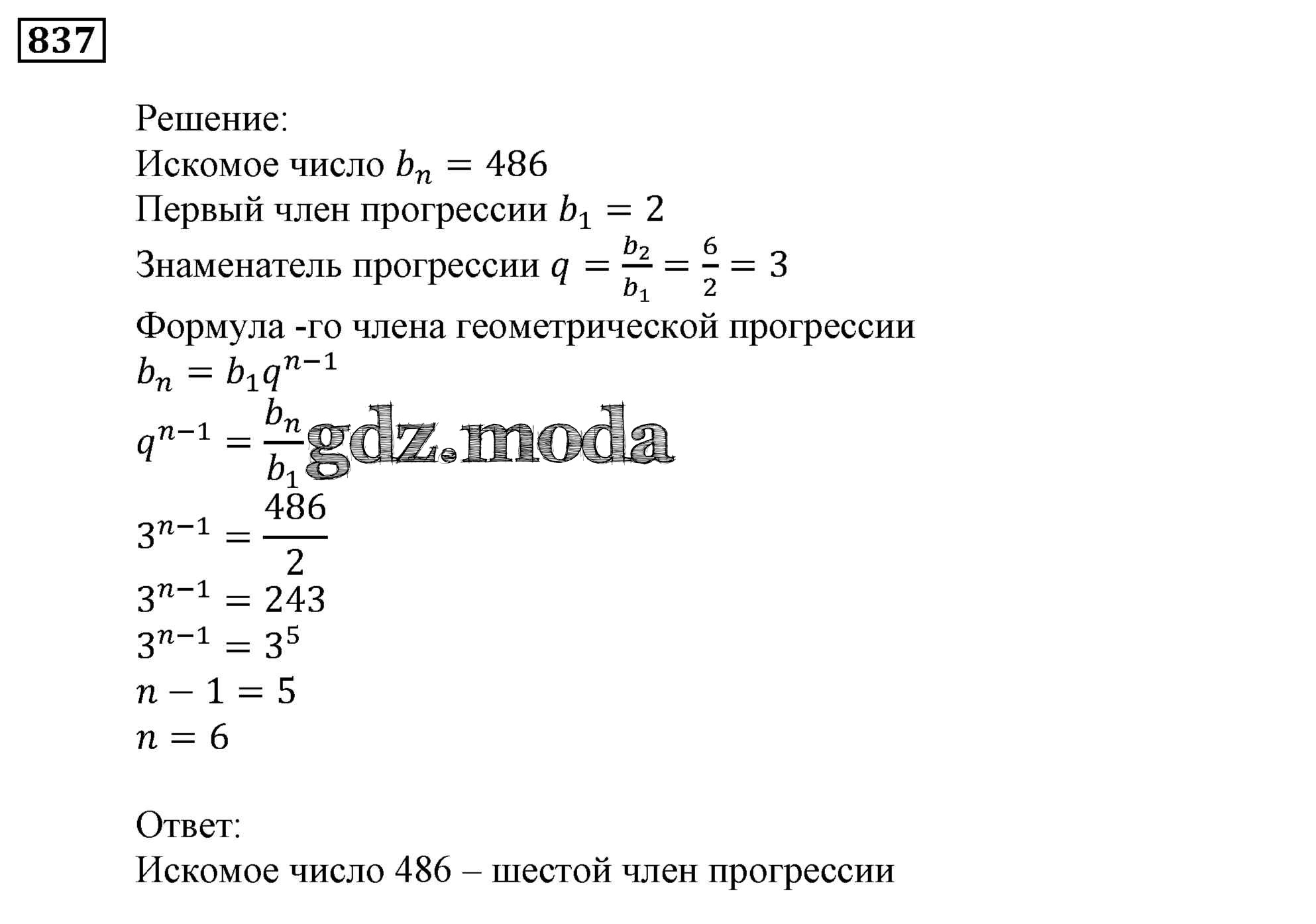 ОТВЕТ на задание № 837 Учебник по Алгебре 9 класс Мерзляк Алгоритм успеха