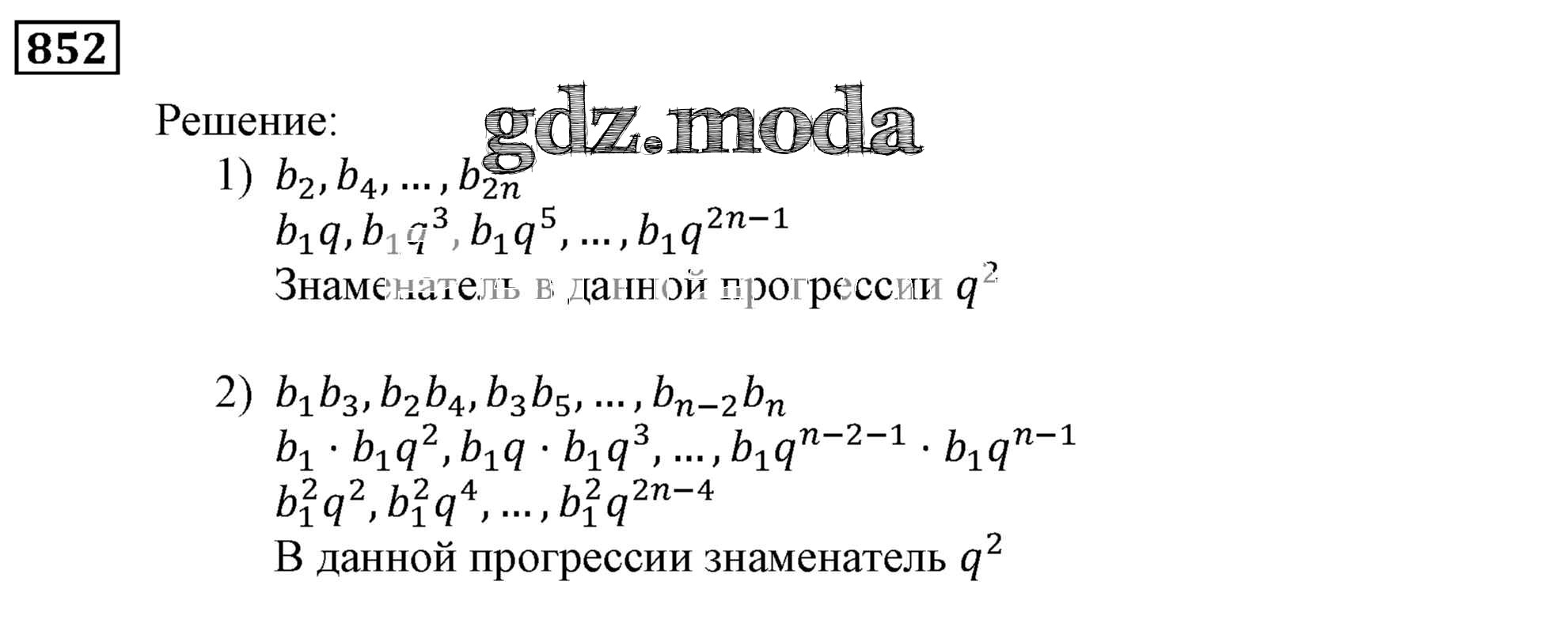 ОТВЕТ на задание № 852 Учебник по Алгебре 9 класс Мерзляк Алгоритм успеха