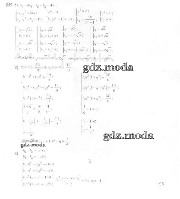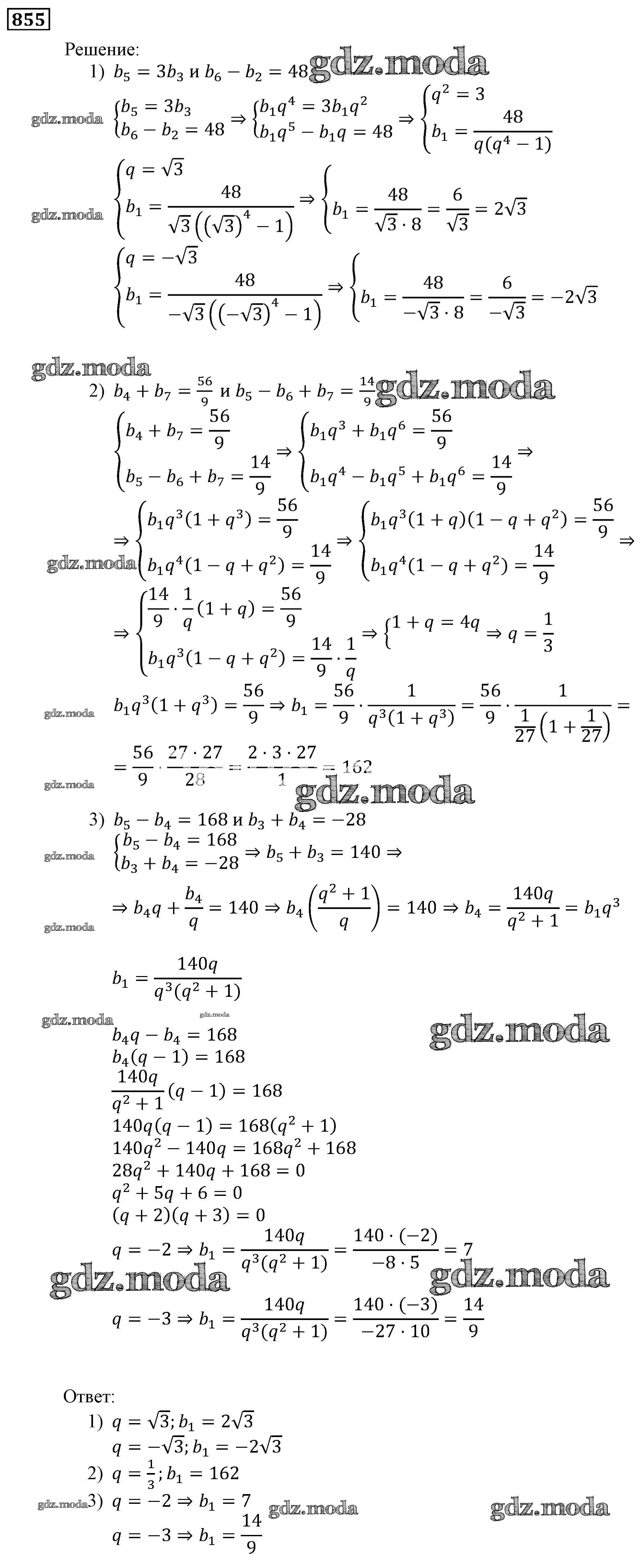 ОТВЕТ на задание № 855 Учебник по Алгебре 9 класс Мерзляк Алгоритм успеха