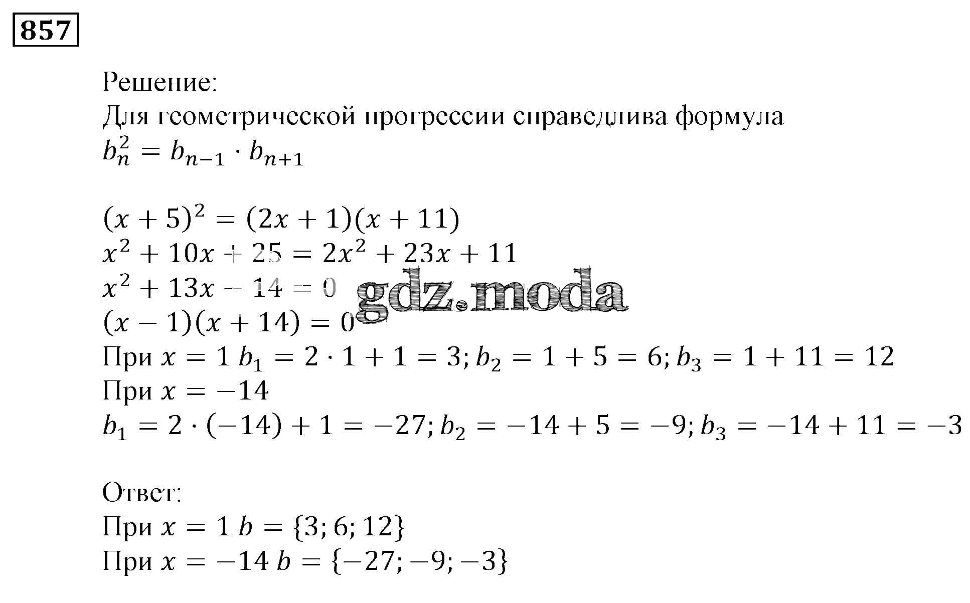 ОТВЕТ на задание № 857 Учебник по Алгебре 9 класс Мерзляк Алгоритм успеха