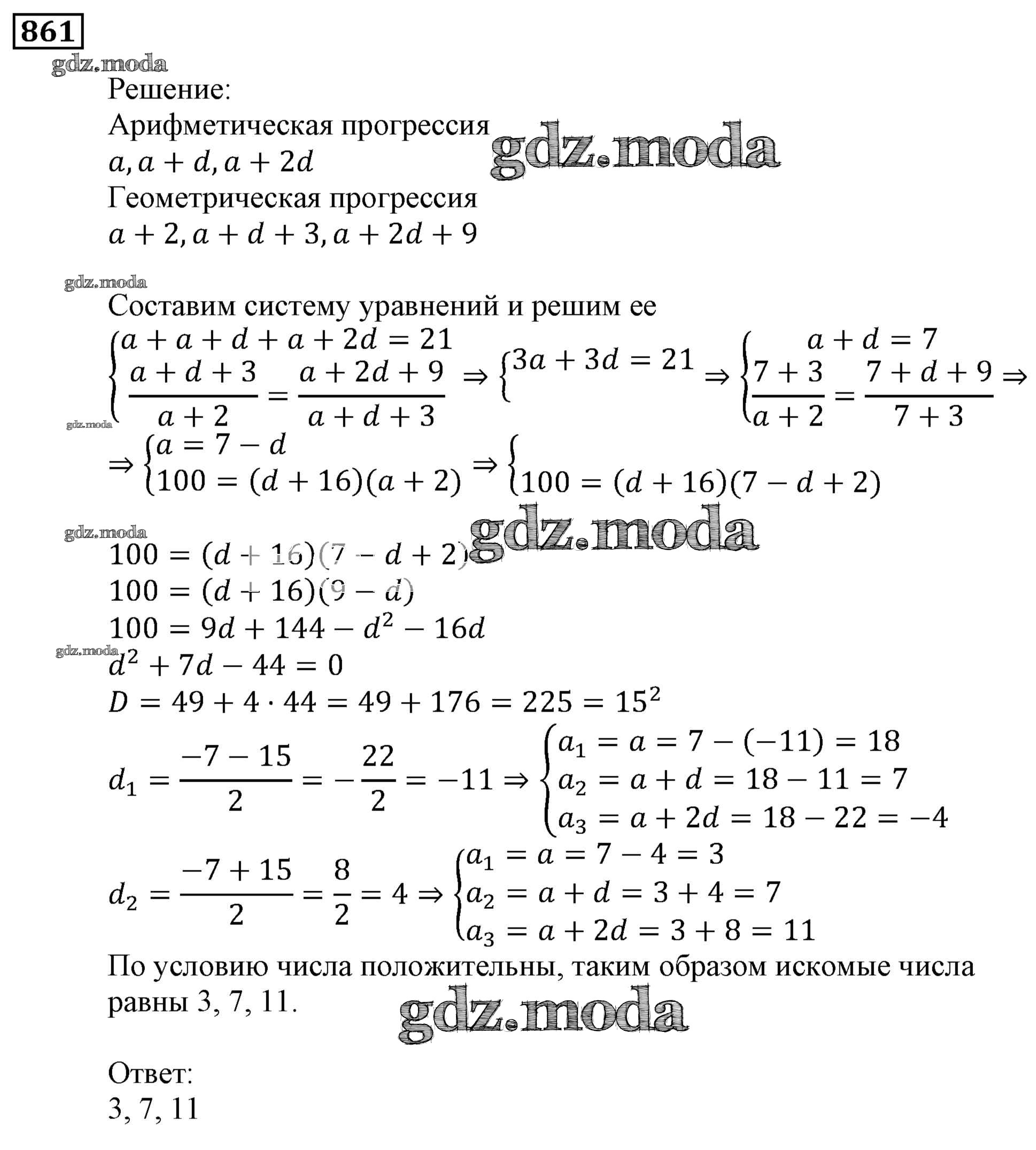ОТВЕТ на задание № 861 Учебник по Алгебре 9 класс Мерзляк Алгоритм успеха