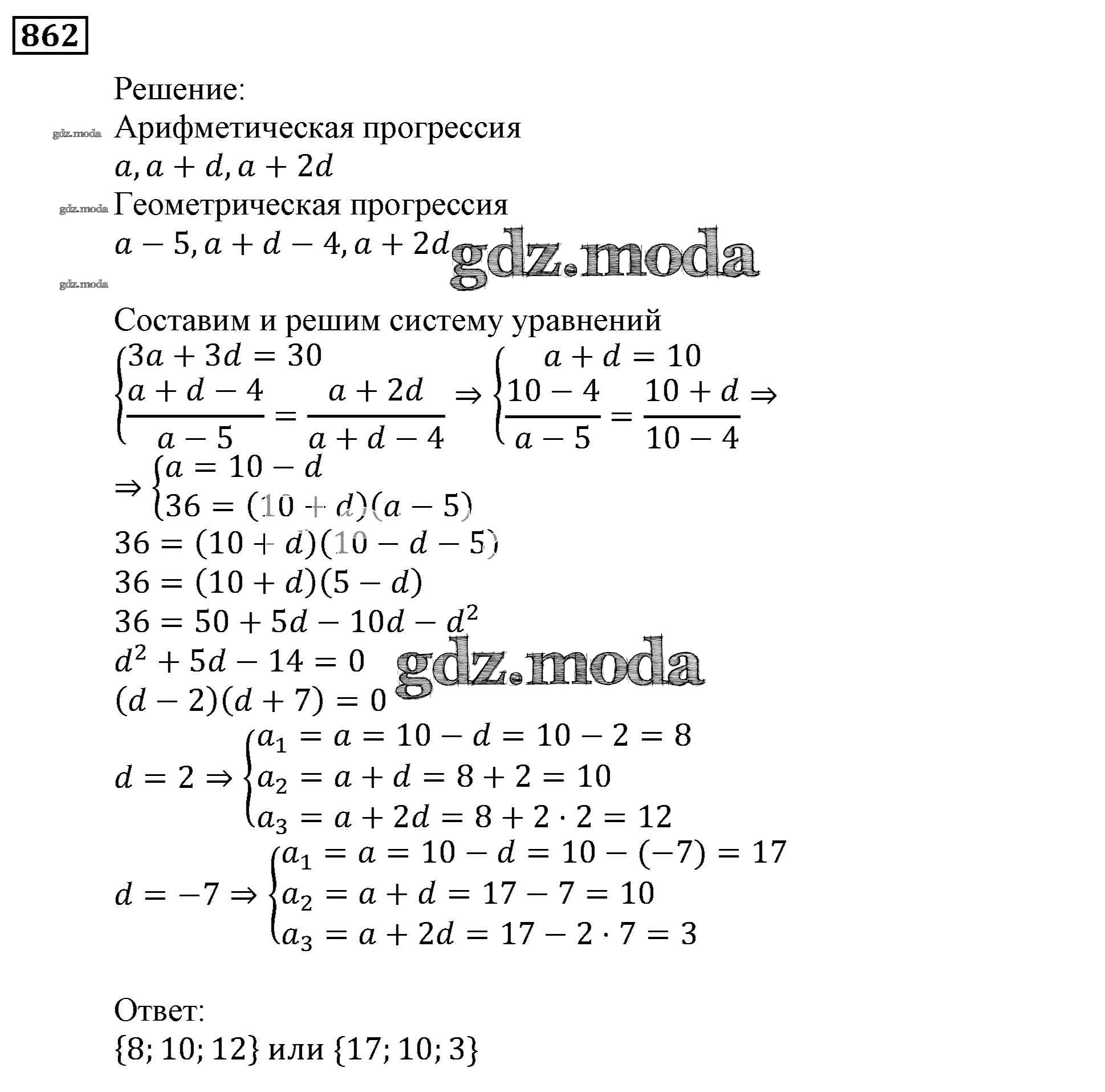 ОТВЕТ на задание № 862 Учебник по Алгебре 9 класс Мерзляк Алгоритм успеха