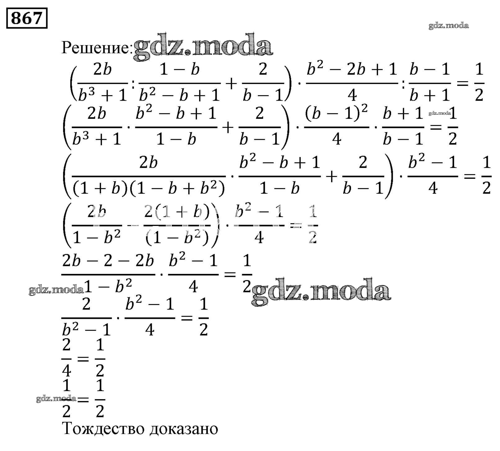 ОТВЕТ на задание № 867 Учебник по Алгебре 9 класс Мерзляк Алгоритм успеха