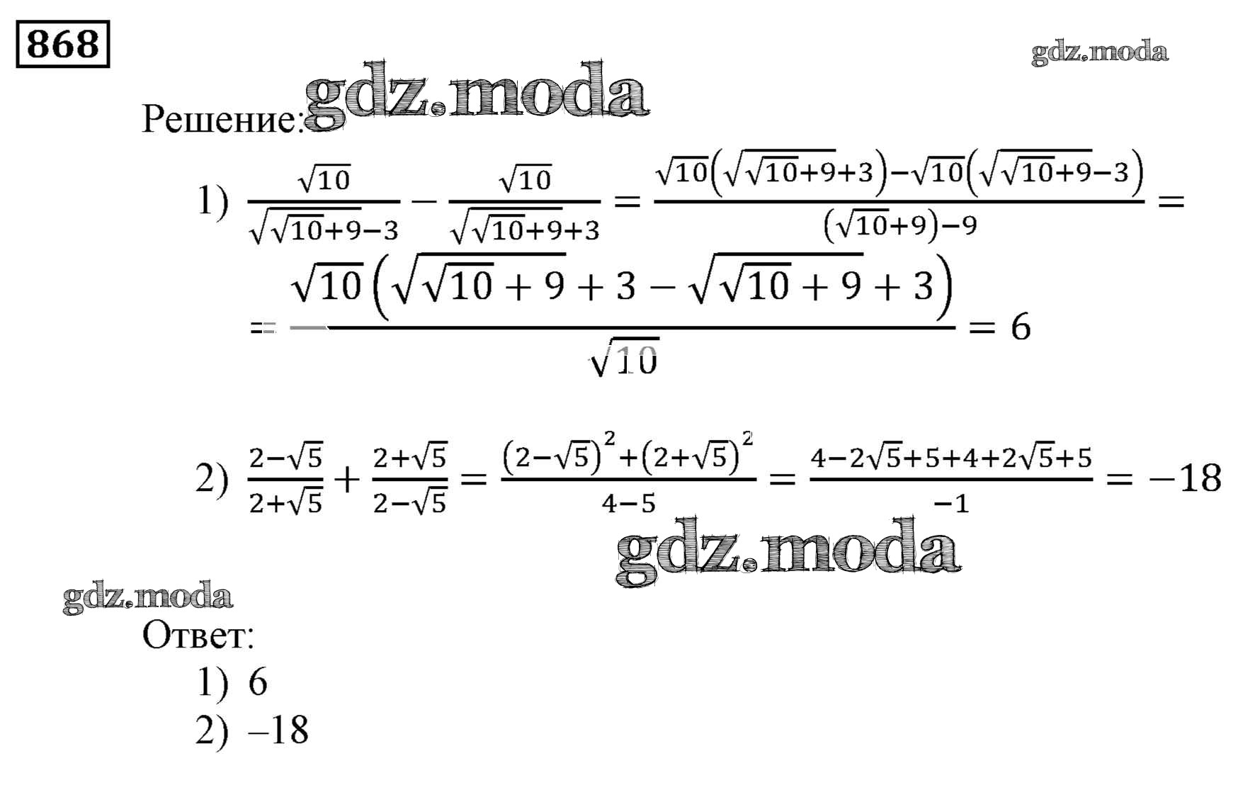 ОТВЕТ на задание № 868 Учебник по Алгебре 9 класс Мерзляк Алгоритм успеха