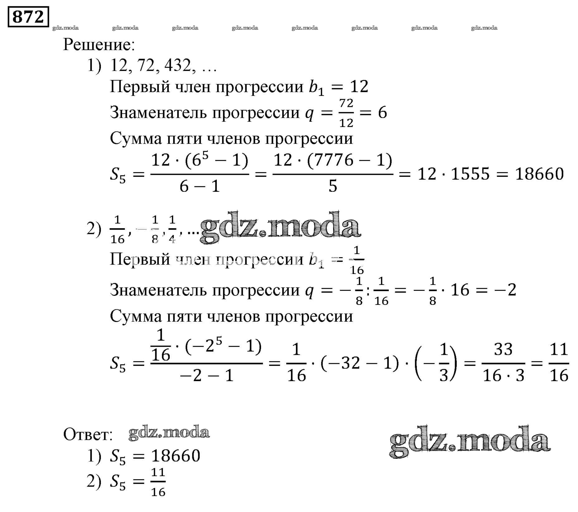 ОТВЕТ на задание № 872 Учебник по Алгебре 9 класс Мерзляк Алгоритм успеха