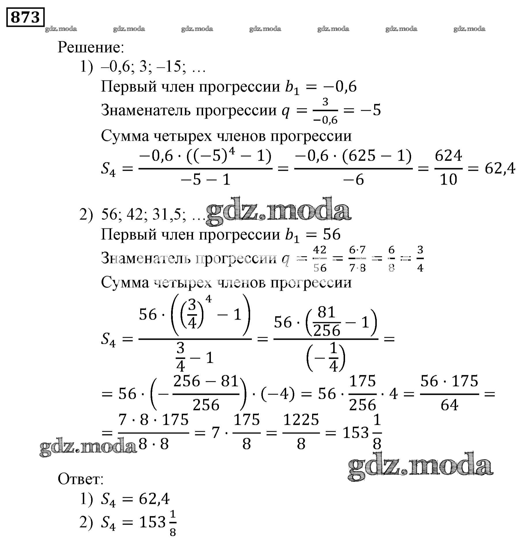 ОТВЕТ на задание № 873 Учебник по Алгебре 9 класс Мерзляк Алгоритм успеха
