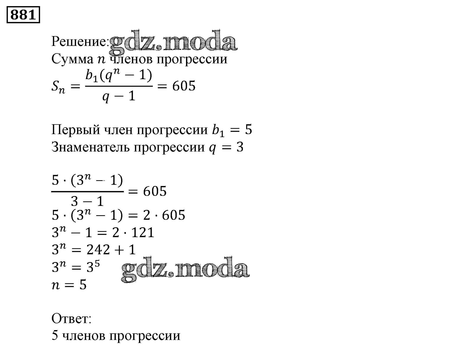 ОТВЕТ на задание № 881 Учебник по Алгебре 9 класс Мерзляк Алгоритм успеха