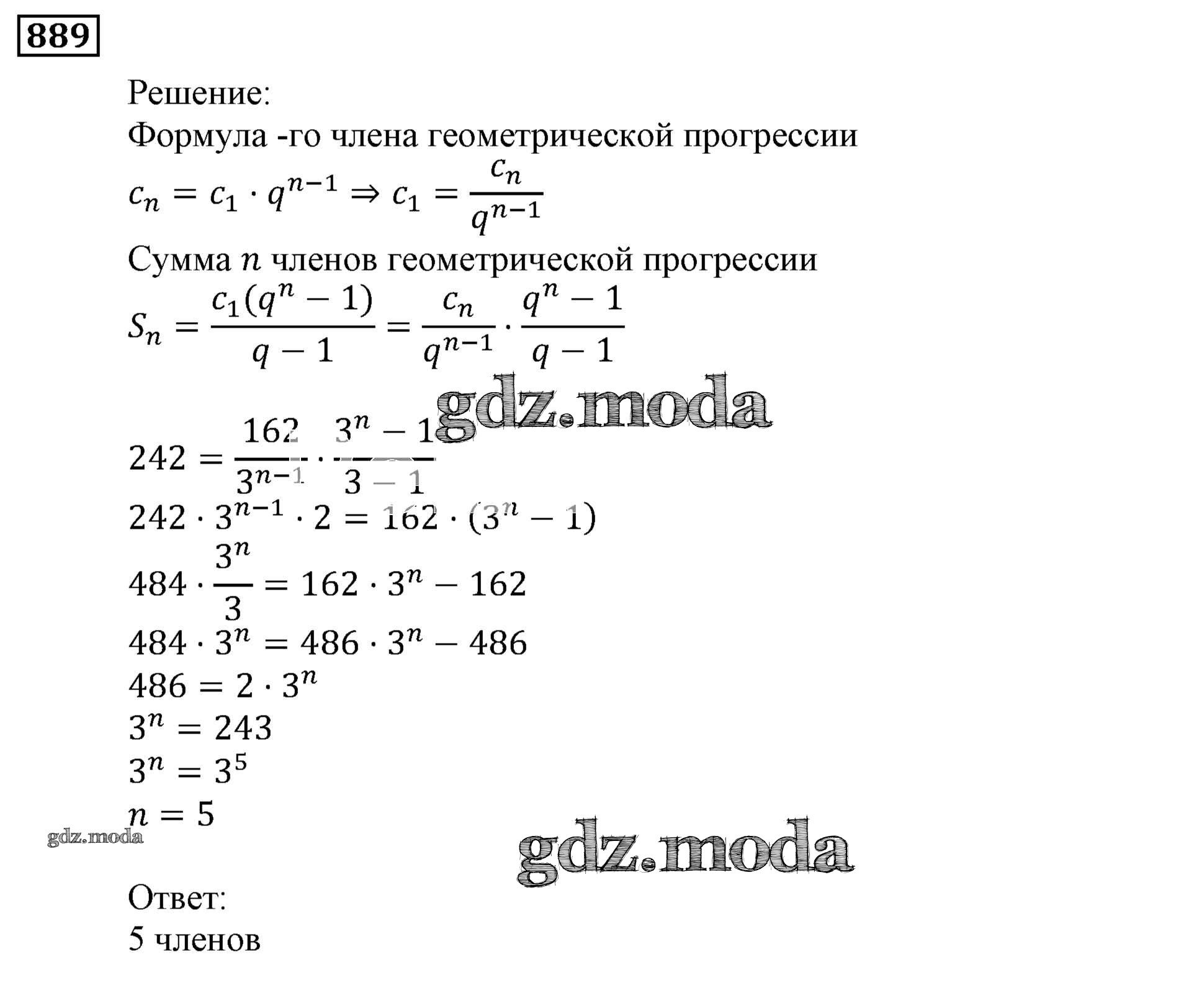 ОТВЕТ на задание № 889 Учебник по Алгебре 9 класс Мерзляк Алгоритм успеха