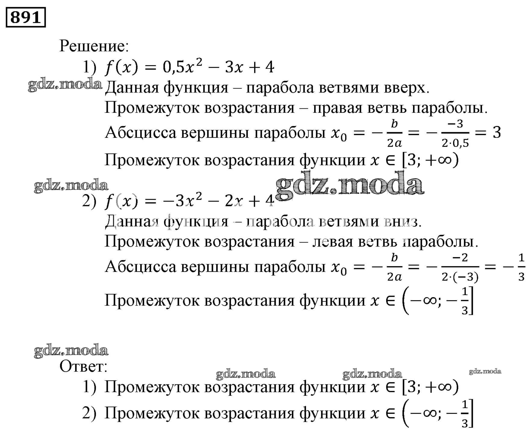 ОТВЕТ на задание № 891 Учебник по Алгебре 9 класс Мерзляк Алгоритм успеха
