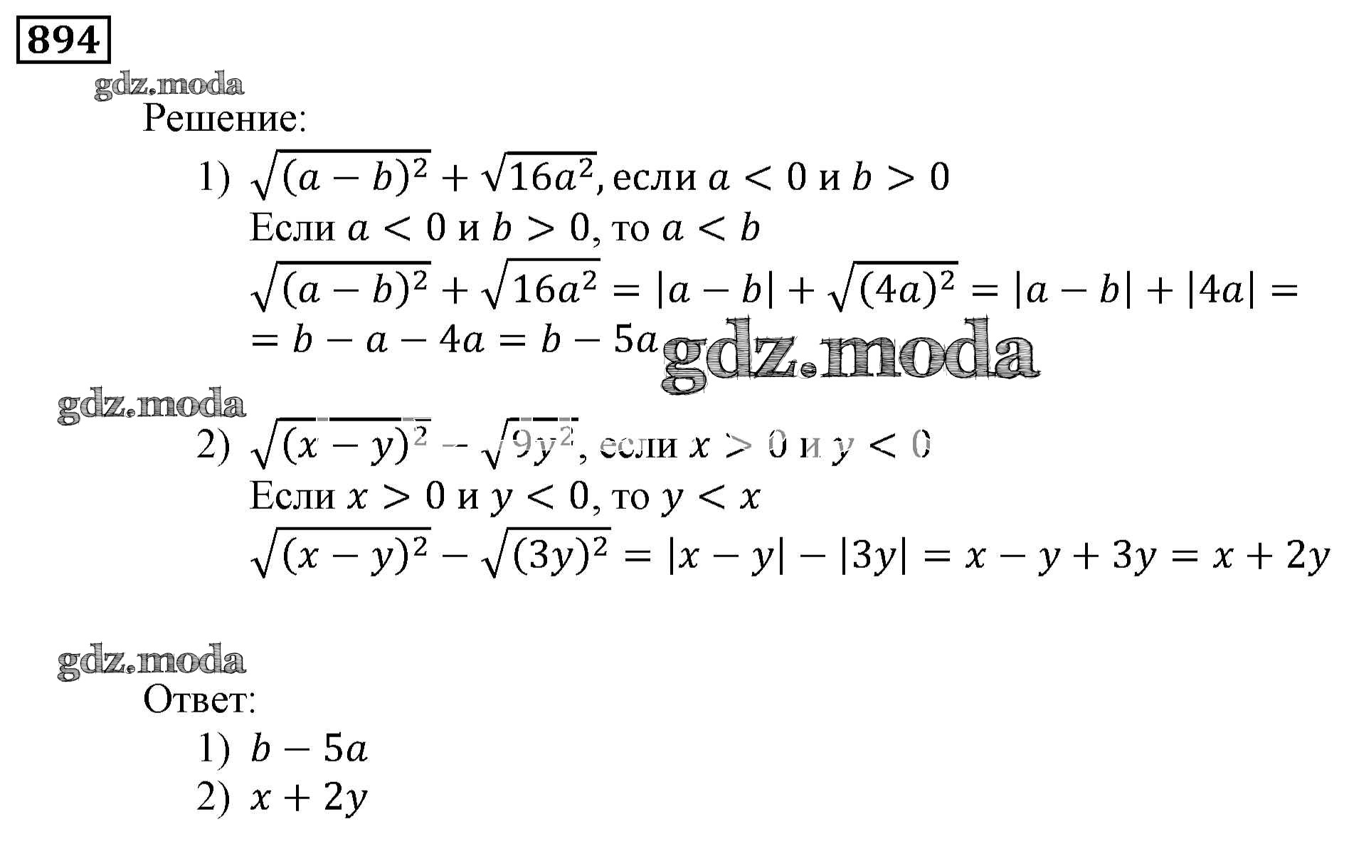 ОТВЕТ на задание № 894 Учебник по Алгебре 9 класс Мерзляк Алгоритм успеха