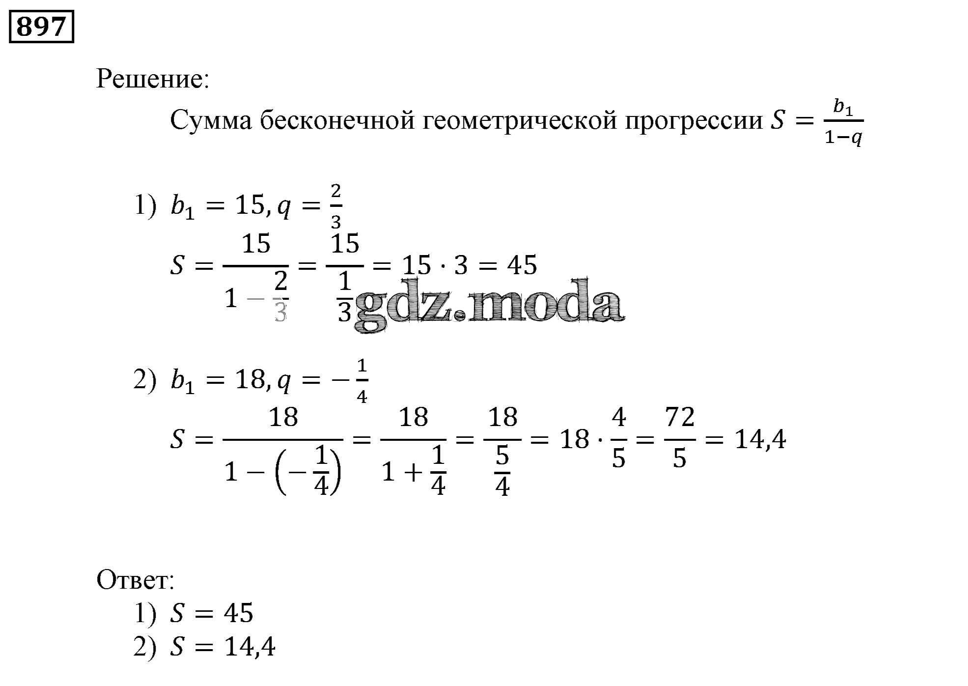 ОТВЕТ на задание № 897 Учебник по Алгебре 9 класс Мерзляк Алгоритм успеха
