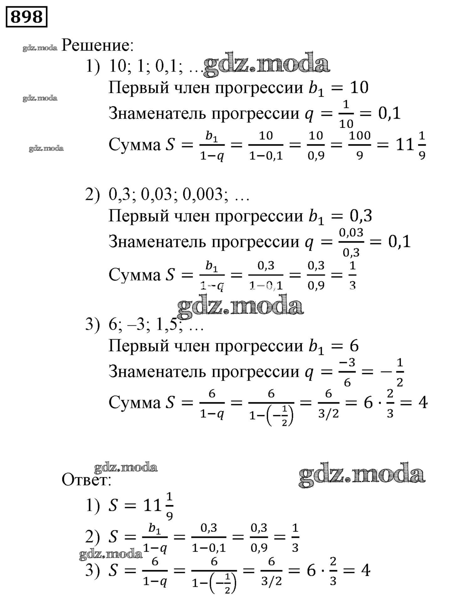 ОТВЕТ на задание № 898 Учебник по Алгебре 9 класс Мерзляк Алгоритм успеха