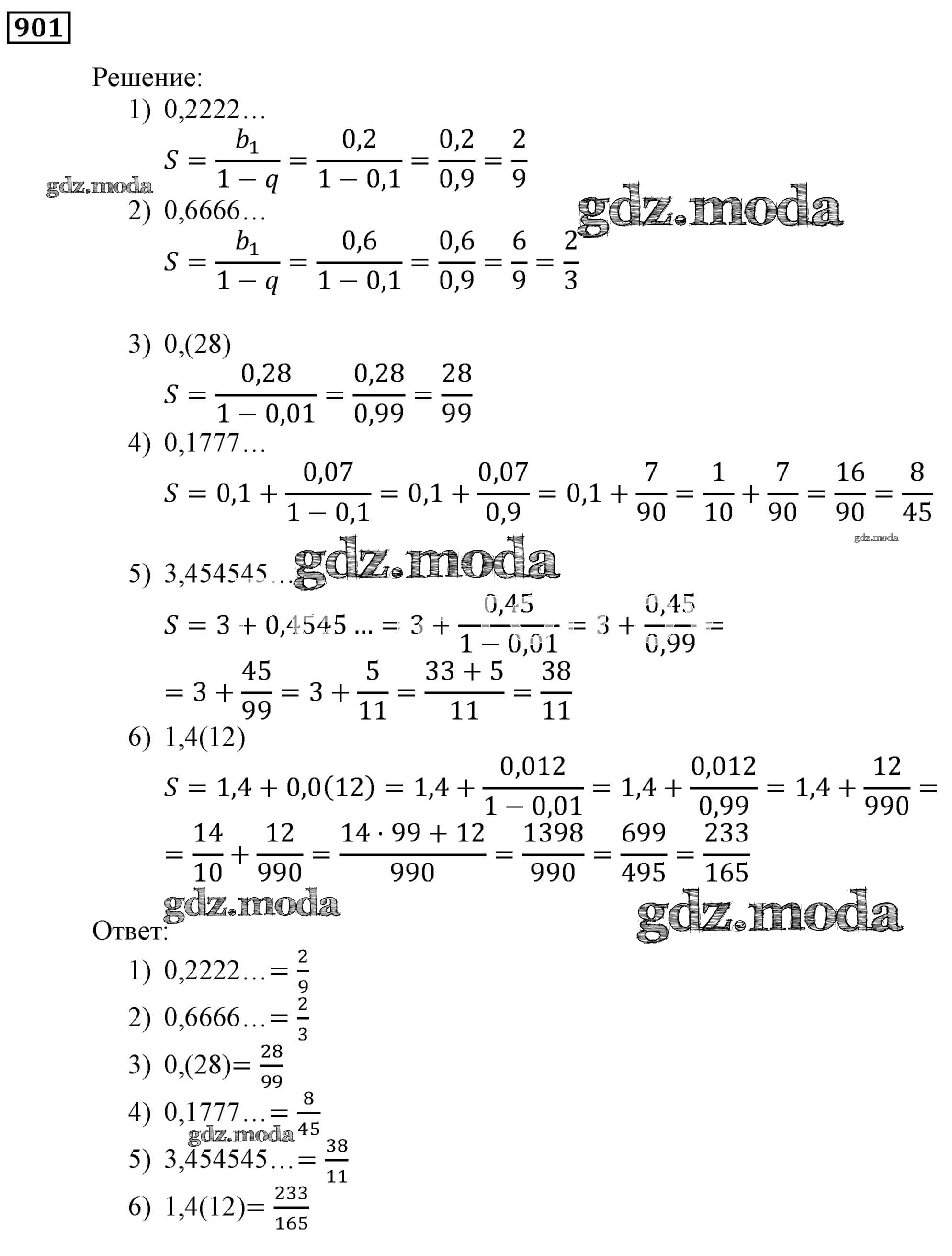 ОТВЕТ на задание № 901 Учебник по Алгебре 9 класс Мерзляк Алгоритм успеха