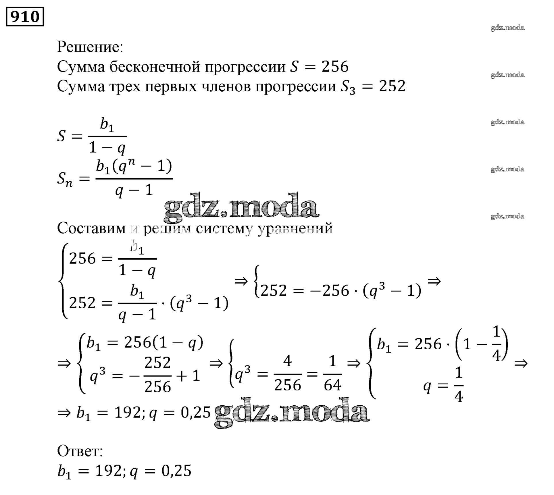 ОТВЕТ на задание № 910 Учебник по Алгебре 9 класс Мерзляк Алгоритм успеха