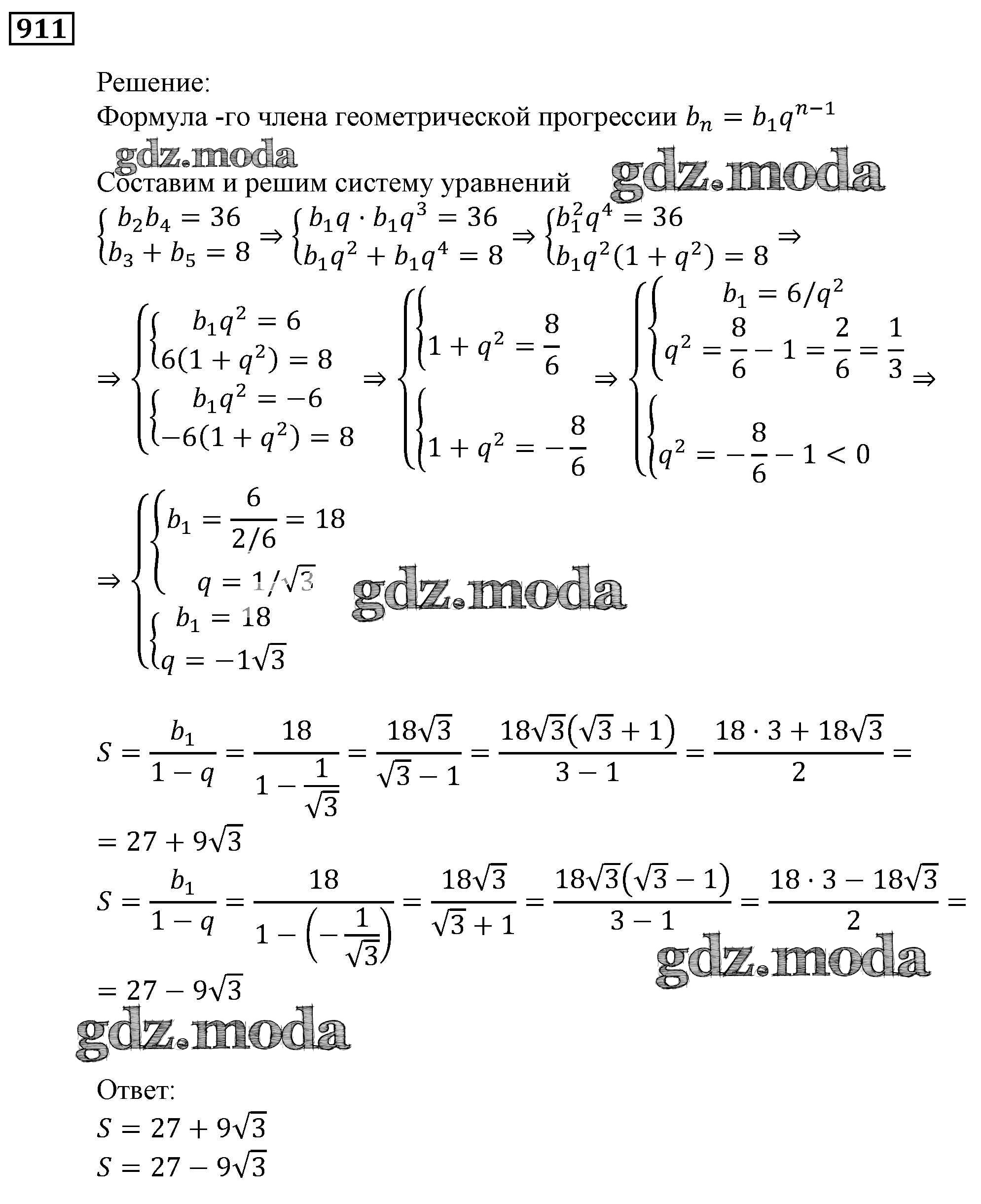ОТВЕТ на задание № 911 Учебник по Алгебре 9 класс Мерзляк Алгоритм успеха