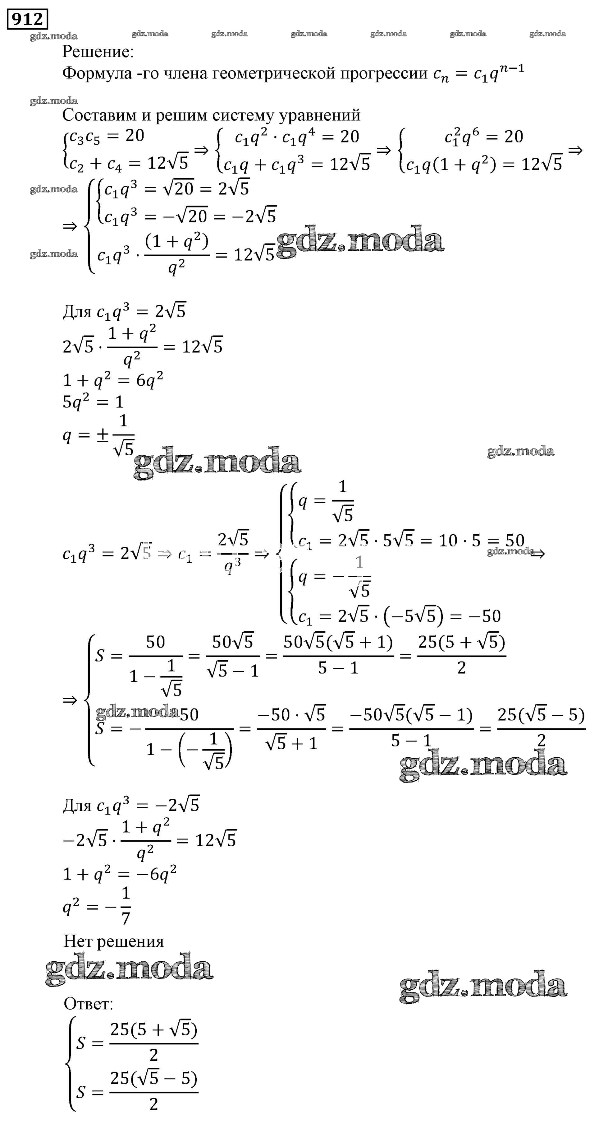 ОТВЕТ на задание № 912 Учебник по Алгебре 9 класс Мерзляк Алгоритм успеха